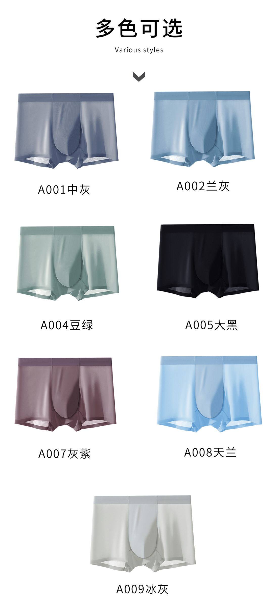 공장 직접 남성 아이스 실크 원활한 속옷 복서 여름 단색 통기성 반바지 복서 속옷 남성스토어 가기