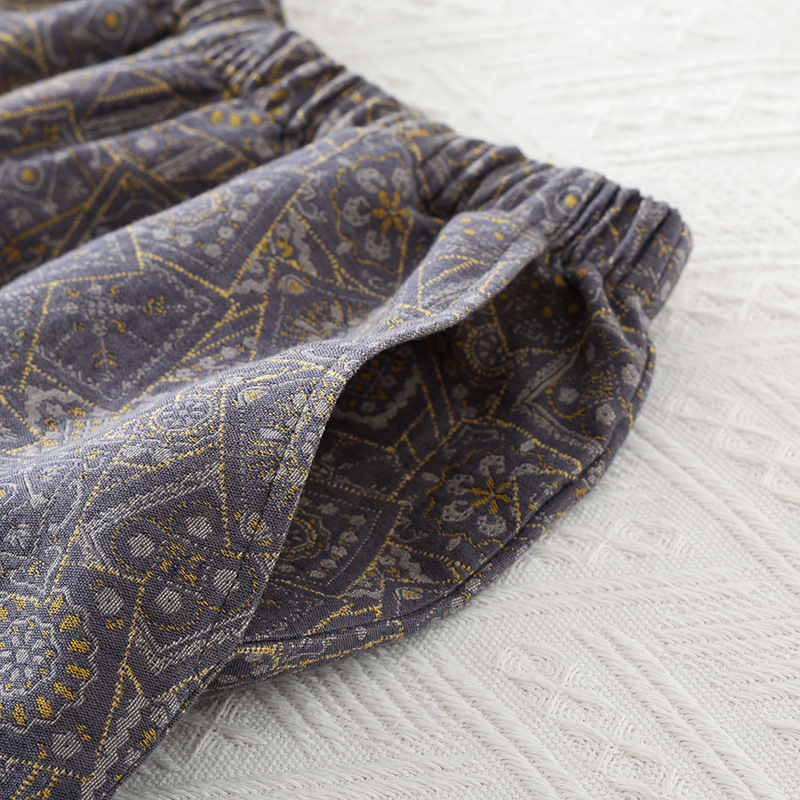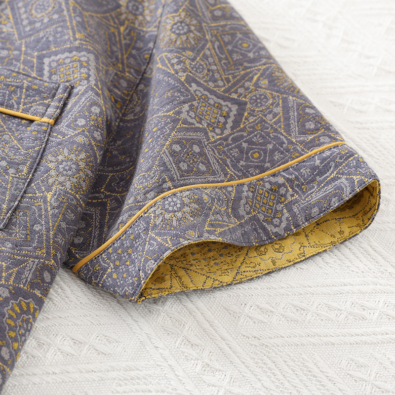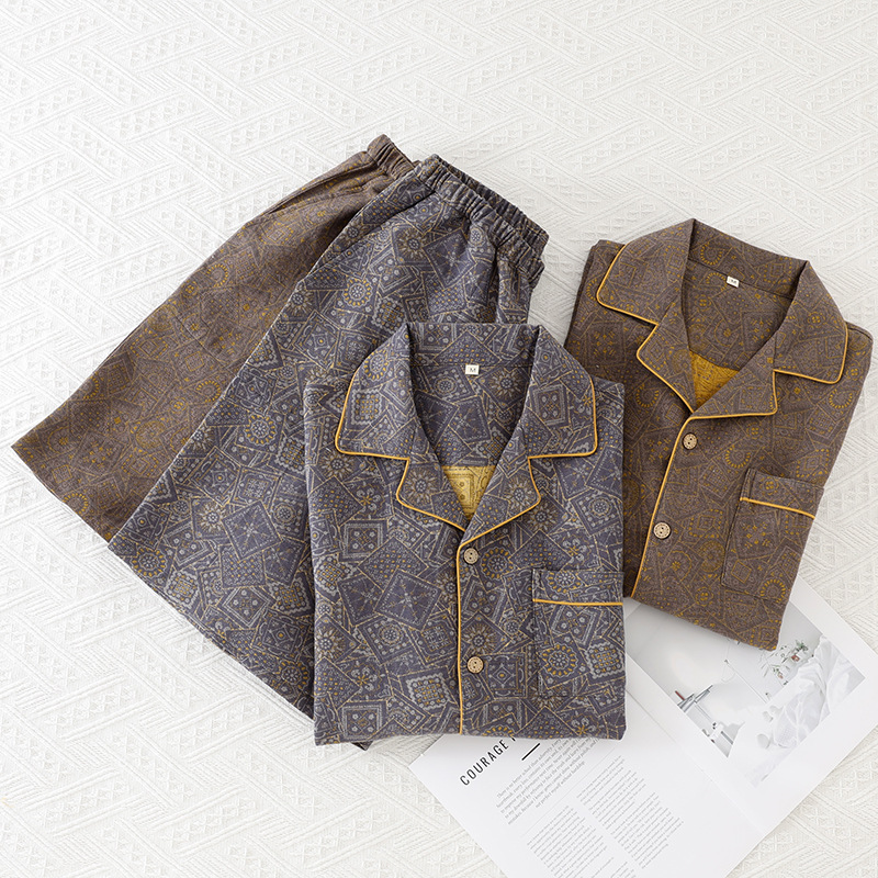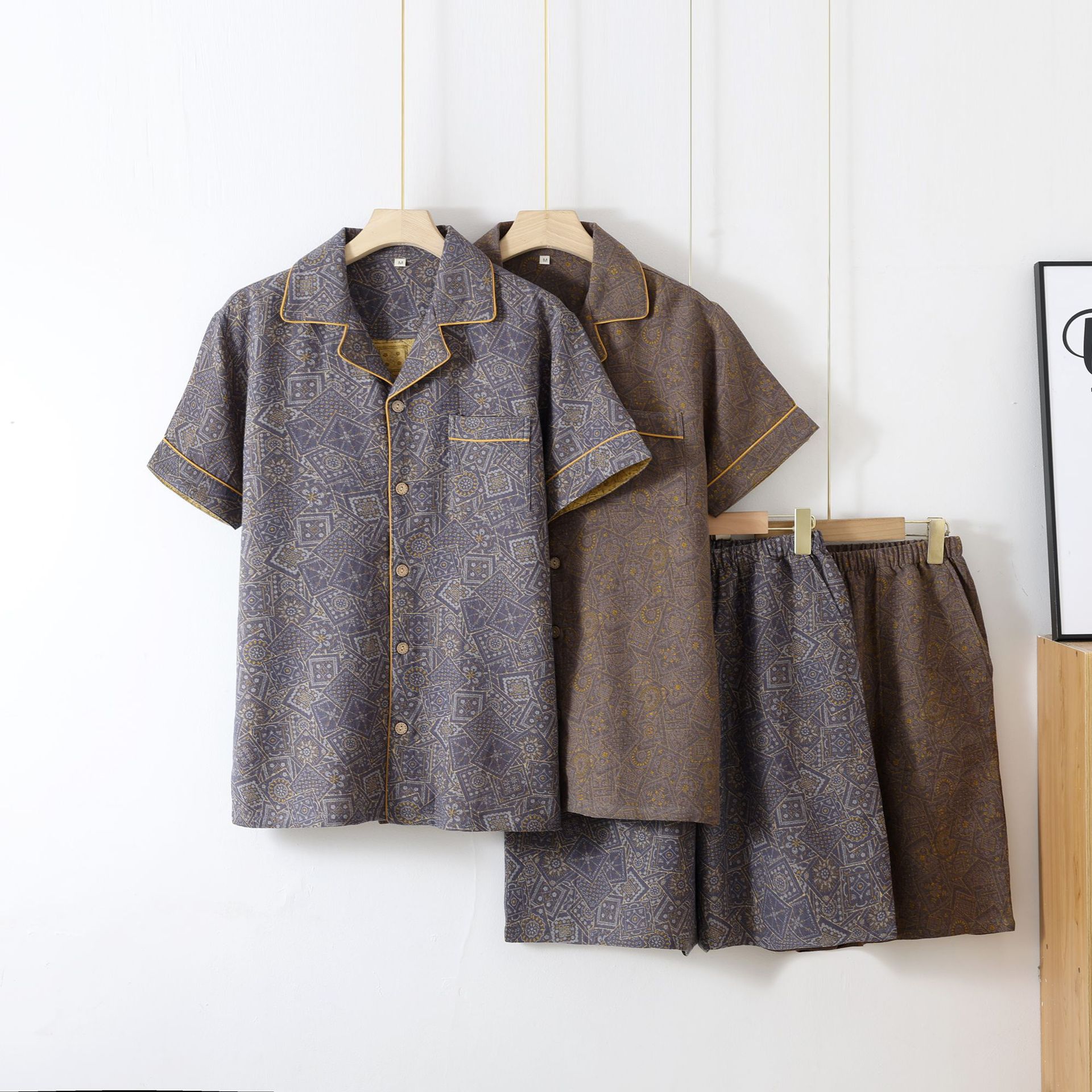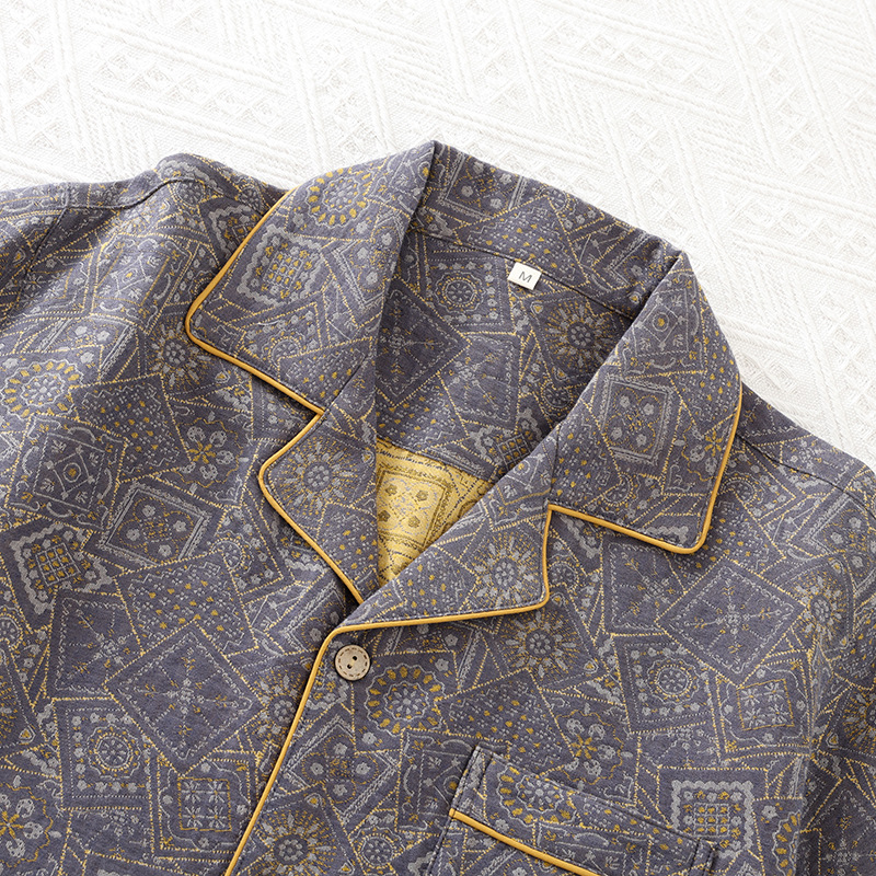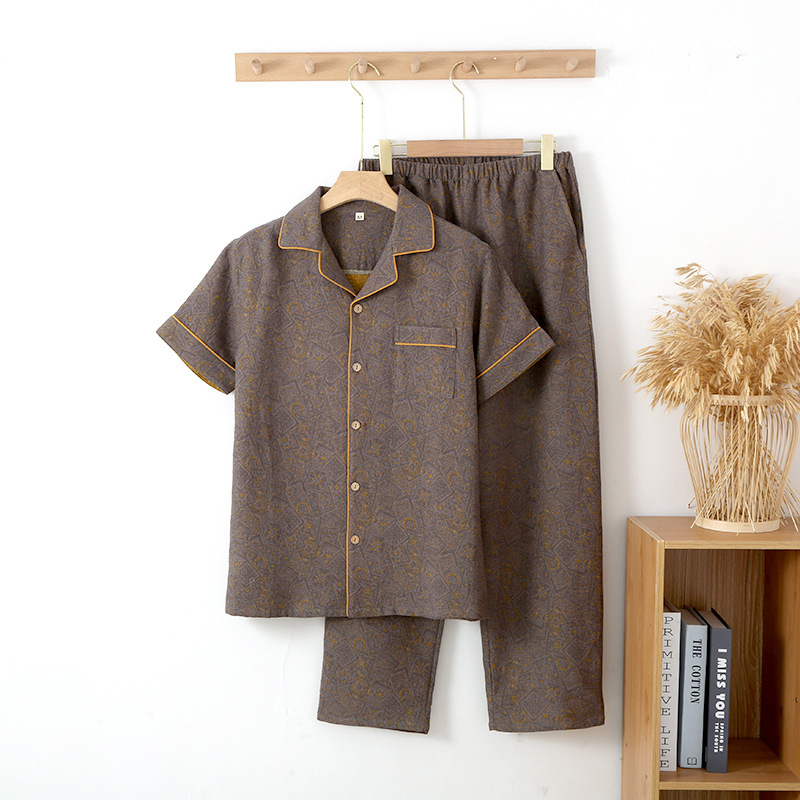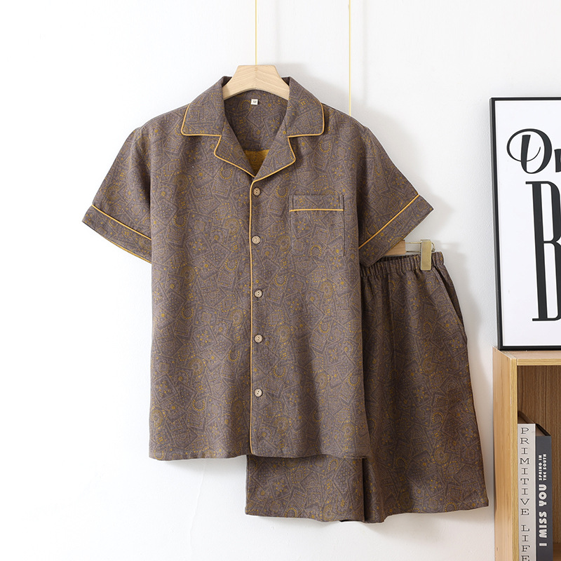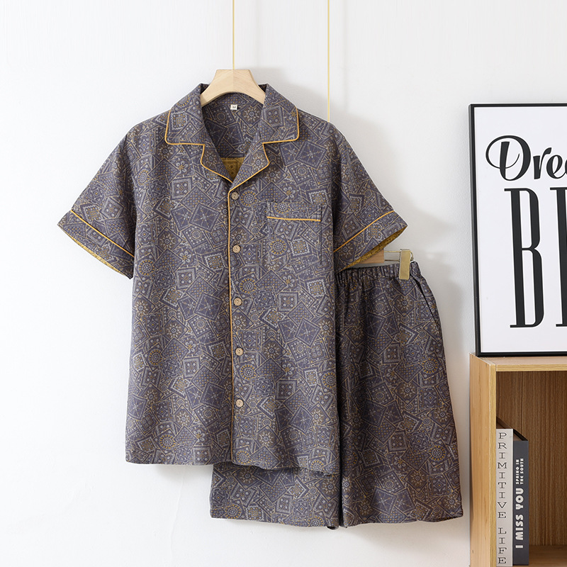 국경 여름 얇은 순면 반팔 반바지 잠옷 거즈 남성 하이 엔드 캐주얼 대형 홈웨어 세트스토어 가기