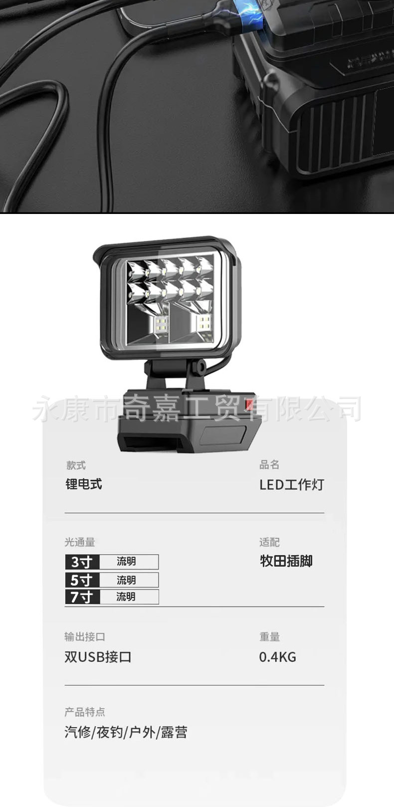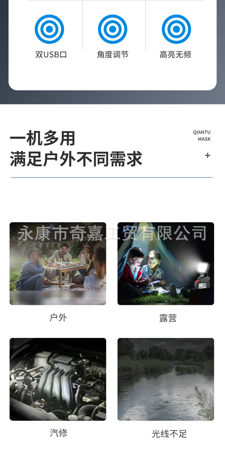 다기능 충전식 LED 램프 리튬 홍수 램프 작업 램프 조명 비상 램프 듀얼 USB 휴대 전화 충전