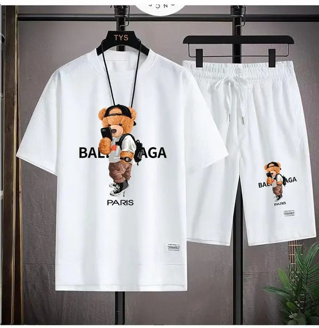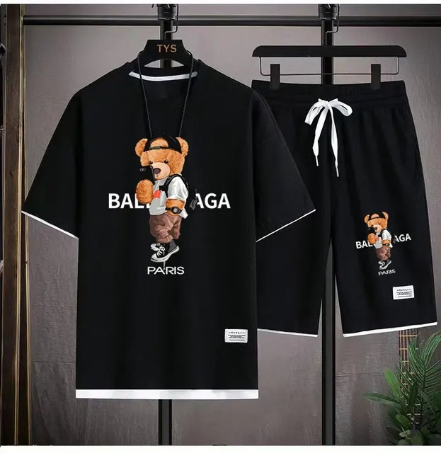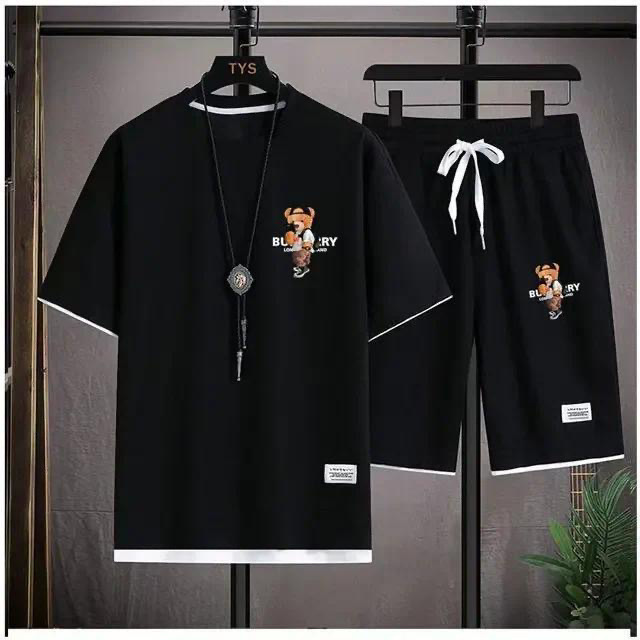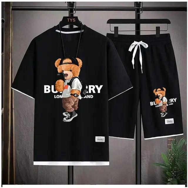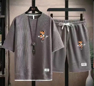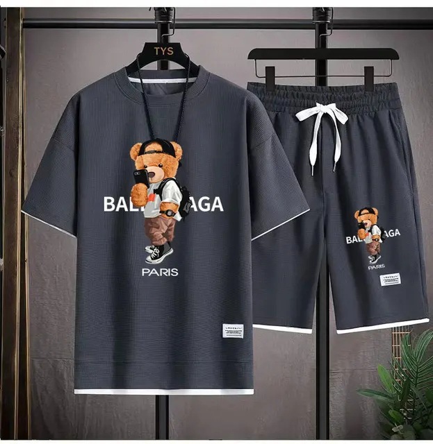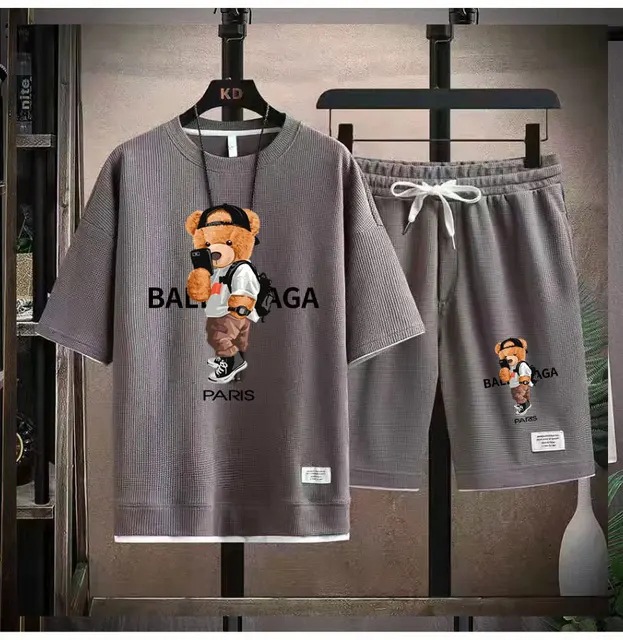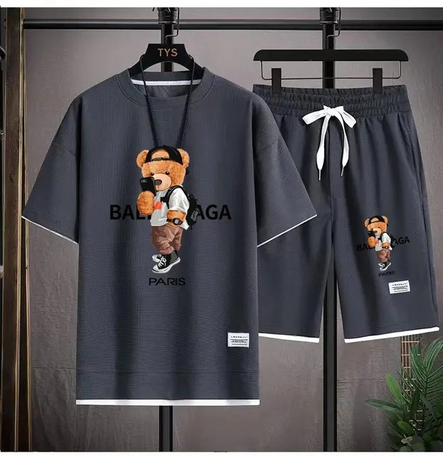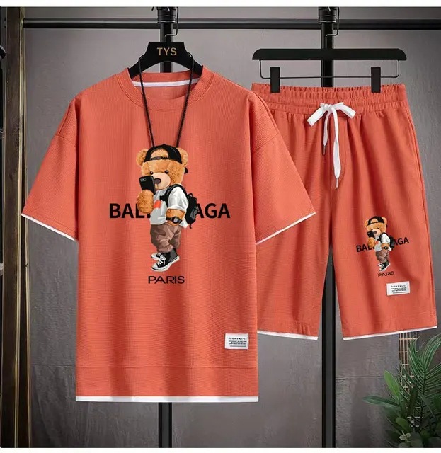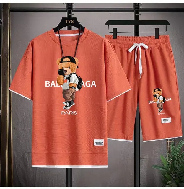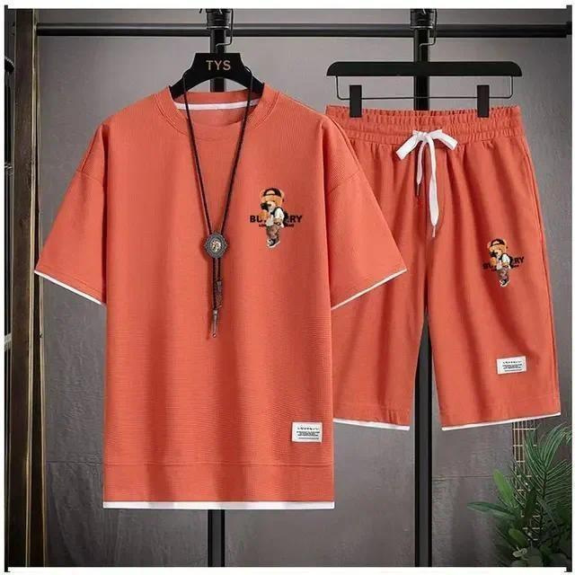 Waffe 반팔 티셔츠 남성 캐주얼 스포츠 세트 도매 여름 느슨한 가짜 투피스 반소매 티셔츠 투피스 세트스토어 가기