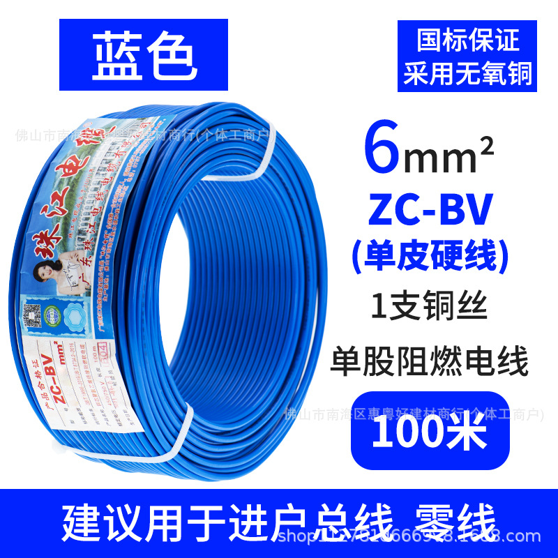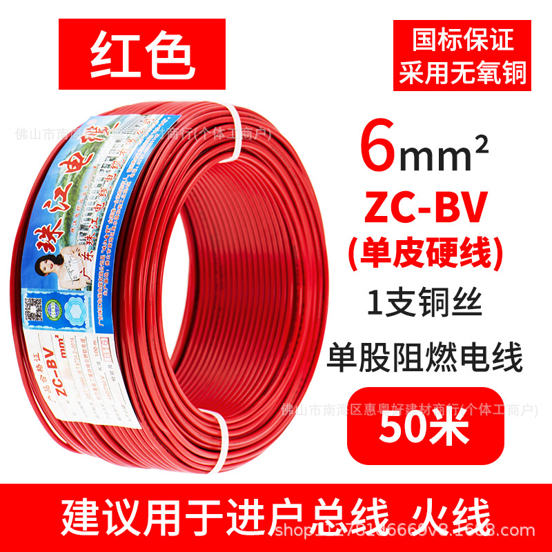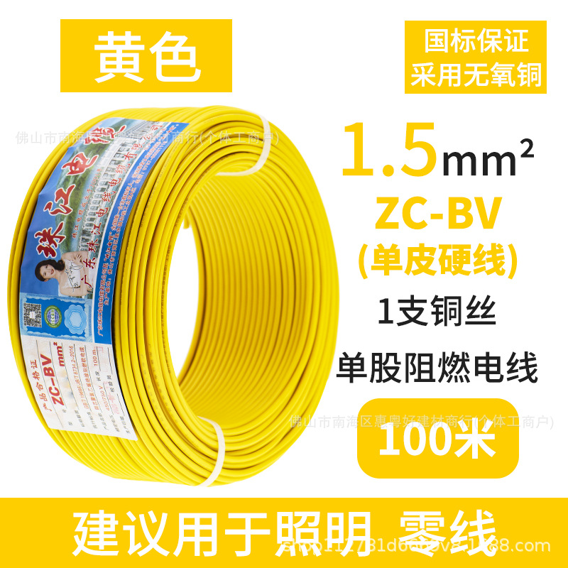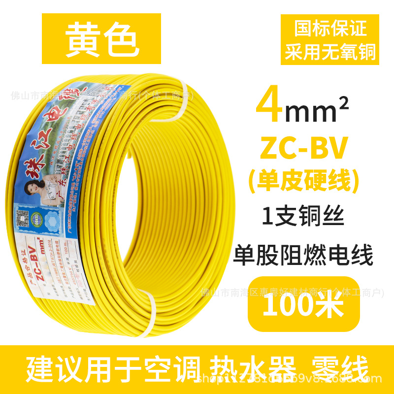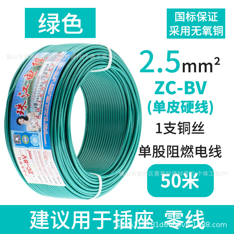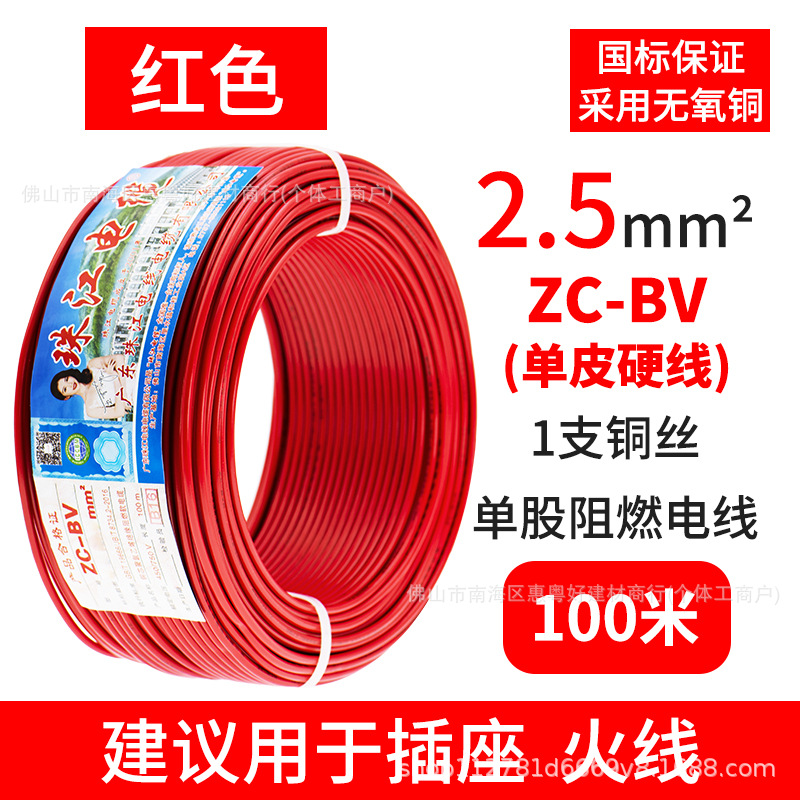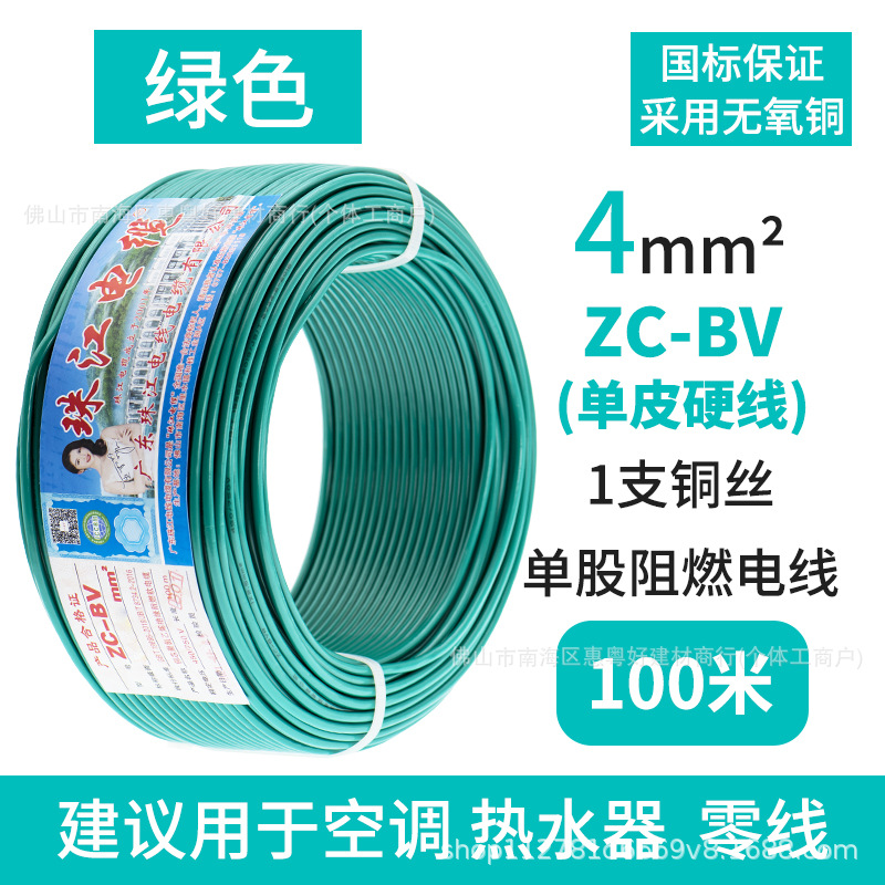 광동 Zhujiang 와이어 및 케이블 BV1.5/2.5/4/6 사각형 단일 순수 구리 코어 GB 하드 와이어 홈 장식 와이어스토어 가기