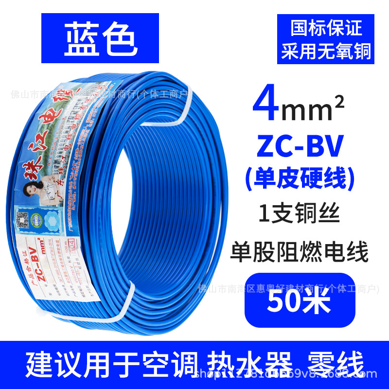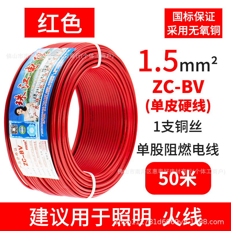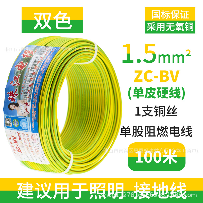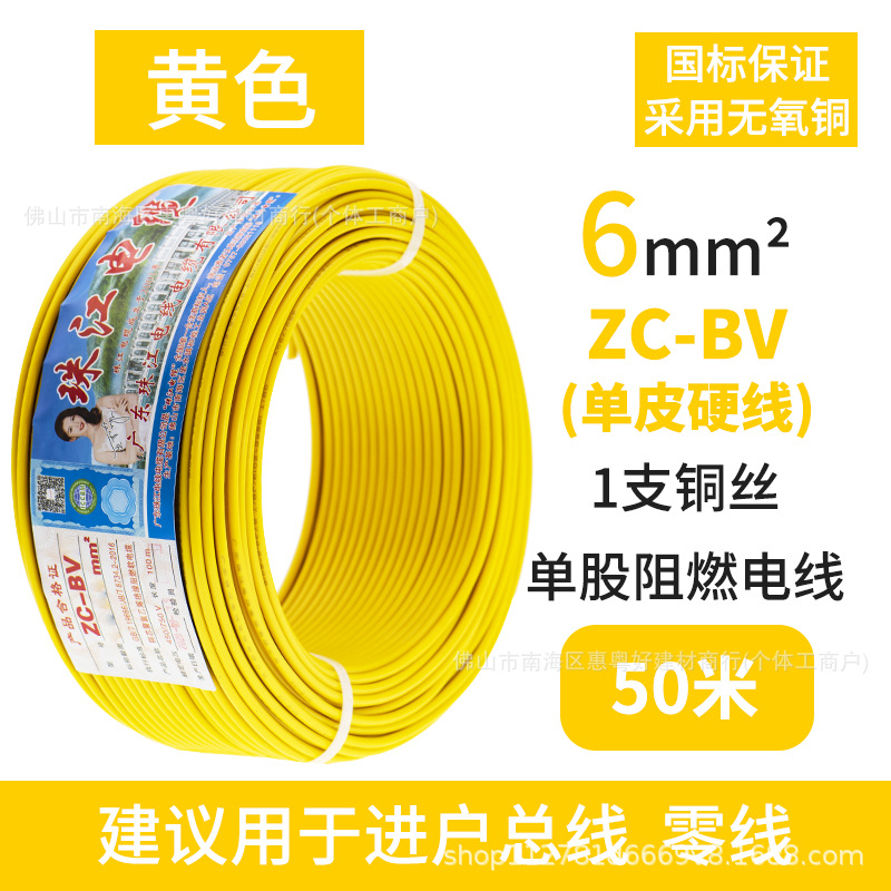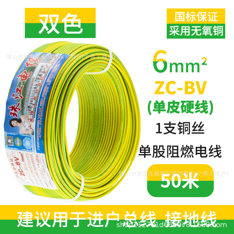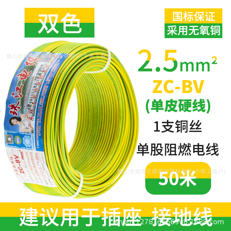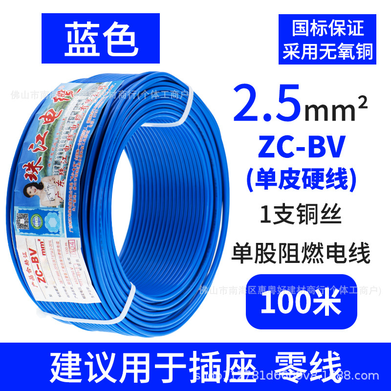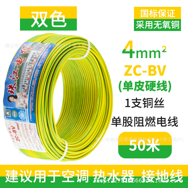 광동 Zhujiang 와이어 및 케이블 BV1.5/2.5/4/6 사각형 단일 순수 구리 코어 GB 하드 와이어 홈 장식 와이어스토어 가기