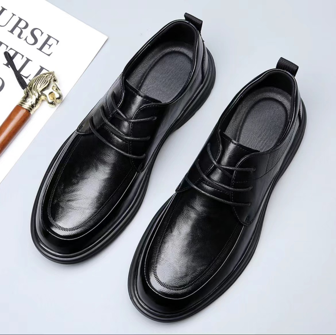 비즈니스 로우 탑 캐주얼 남성 신발 2024 여름 새로운 독특한 가죽 레이스 업 작은 가죽 신발 남성용 라운드 토 가죽 신발스토어 가기