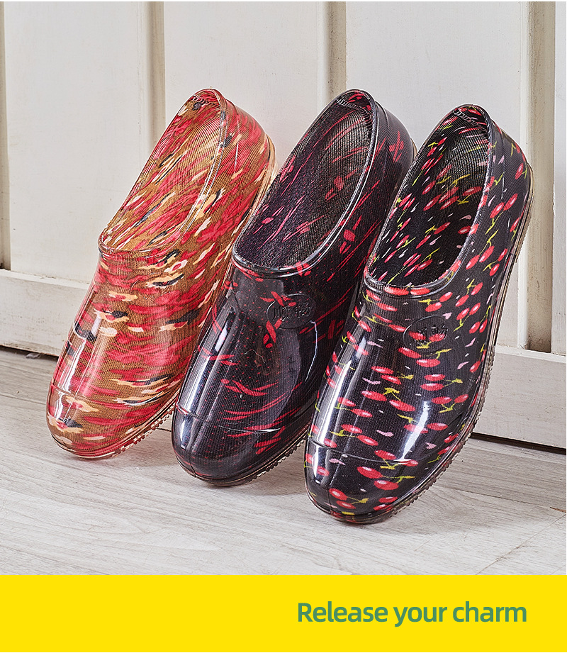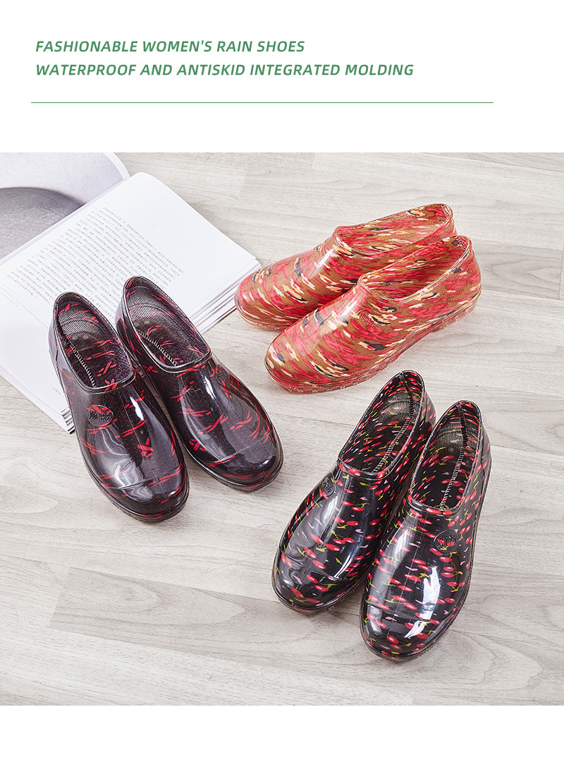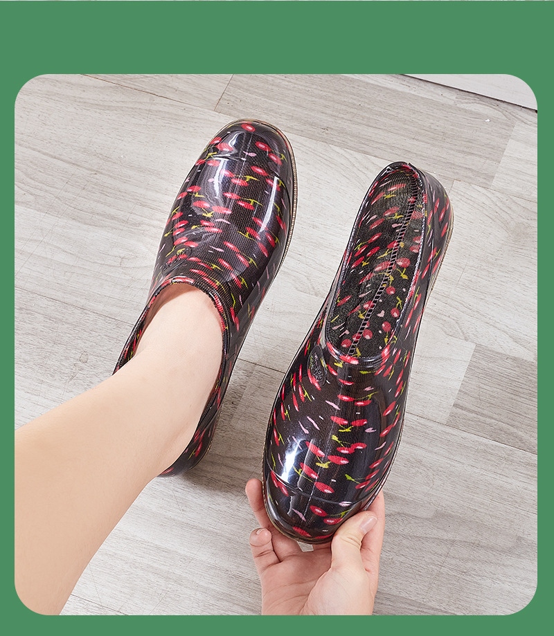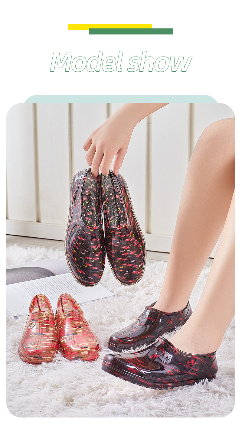 2024 새로운 도착 봄과 여름 유행 방수 낮은 최고 물 신발 여성용 주방 작업 비 슬립 얕은 입 성인 비 신발