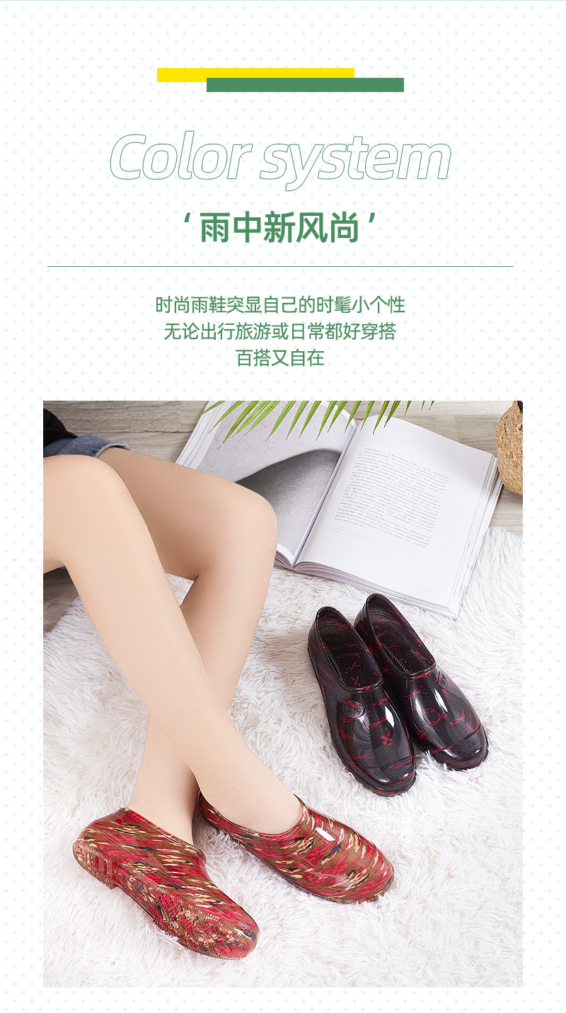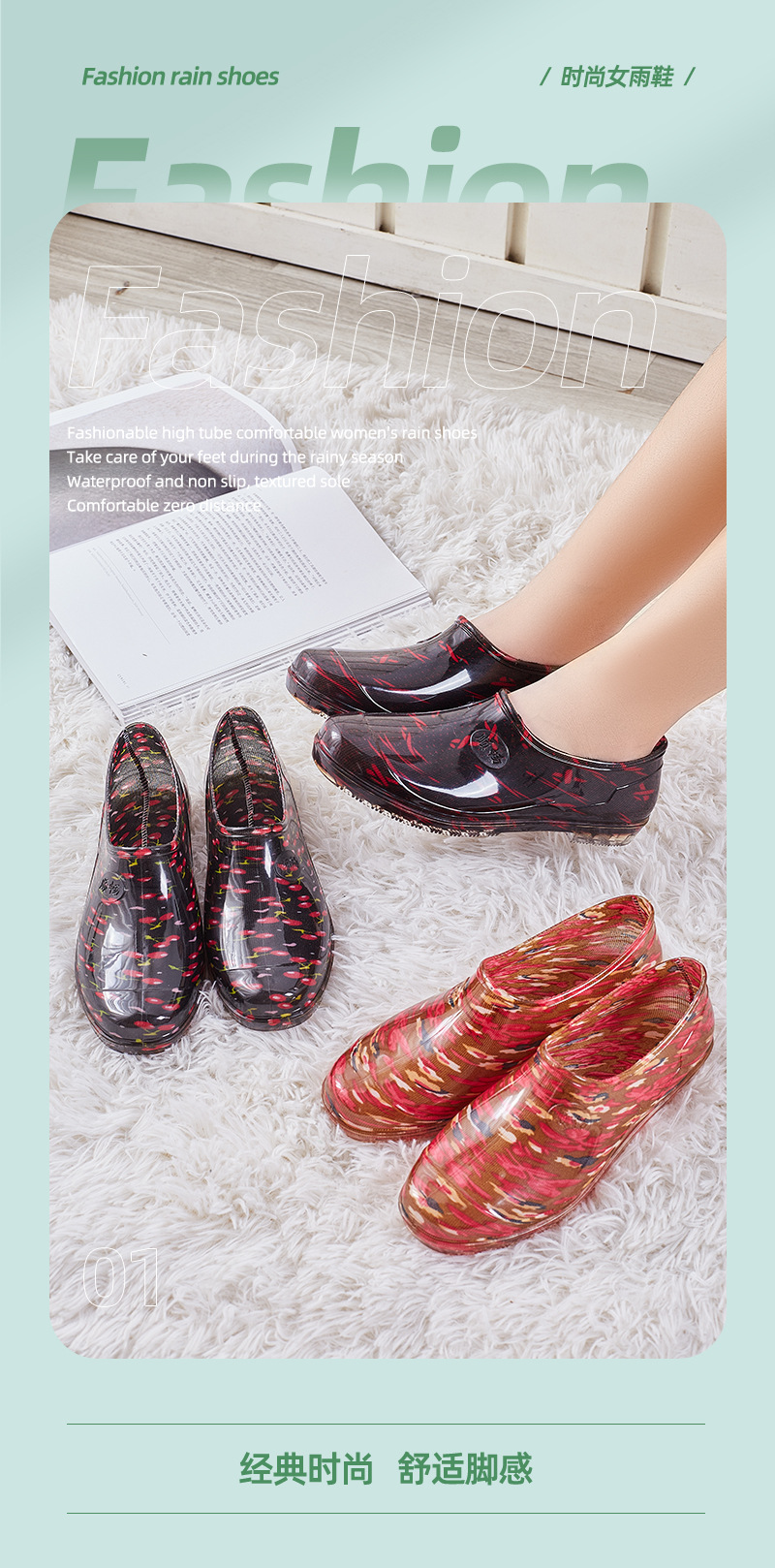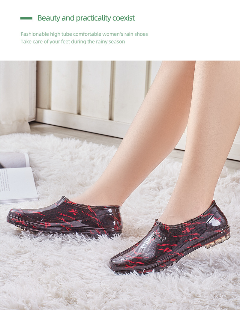 2024 새로운 도착 봄과 여름 유행 방수 낮은 최고 물 신발 여성용 주방 작업 비 슬립 얕은 입 성인 비 신발