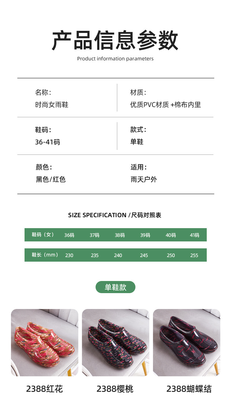 2024 새로운 도착 봄과 여름 유행 방수 낮은 최고 물 신발 여성용 주방 작업 비 슬립 얕은 입 성인 비 신발스토어 가기