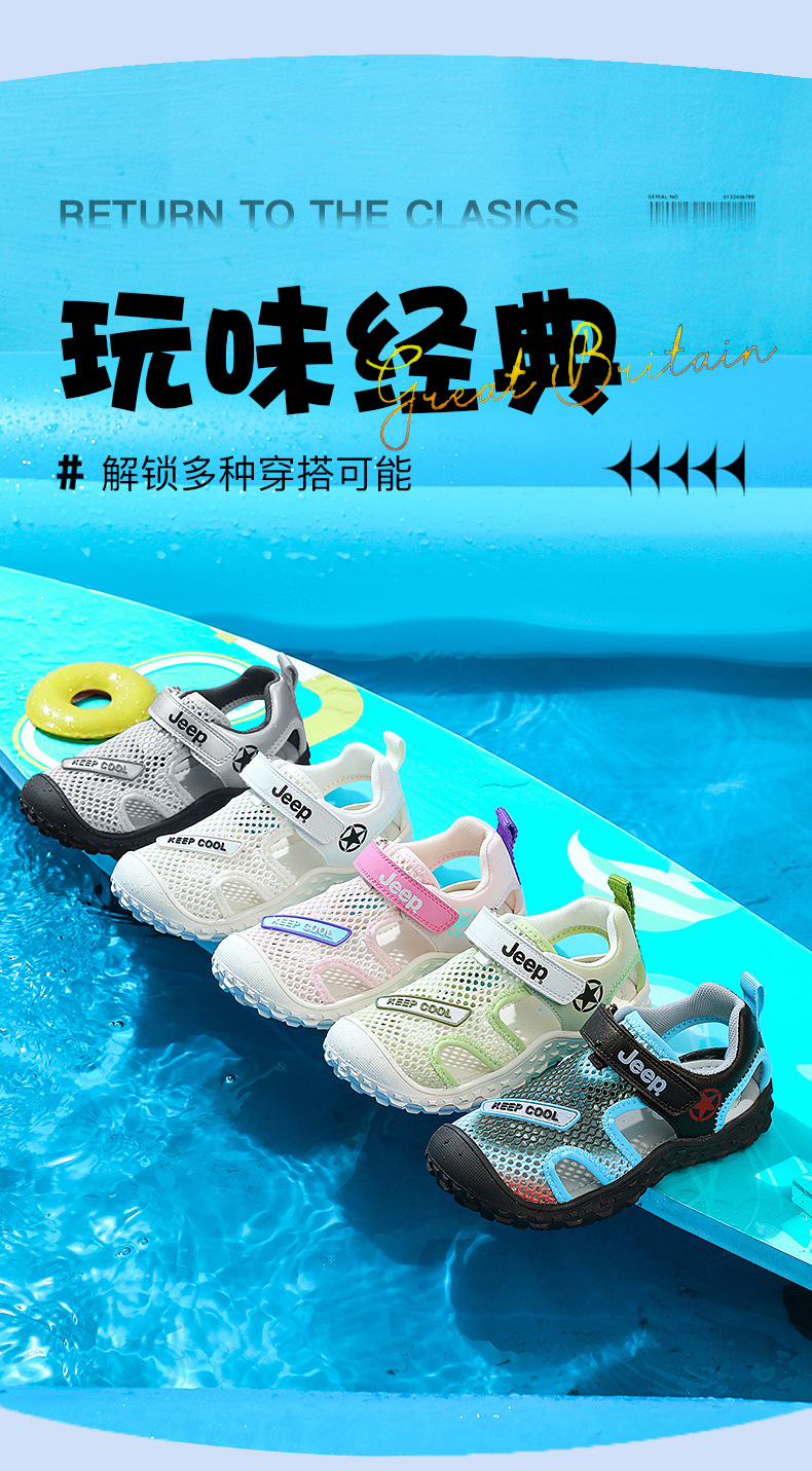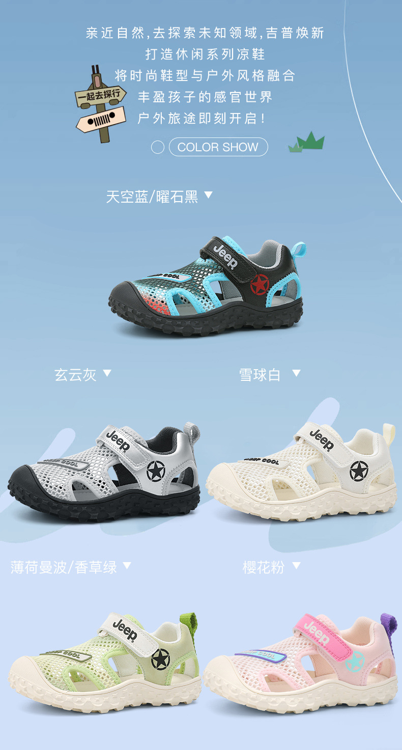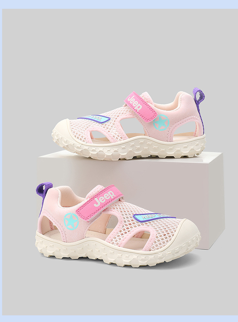 지프 걸스 샌들 2024 새로운 올 매치 벨크로 브룩 할로우 캐주얼 신발 소년 스포츠 신발