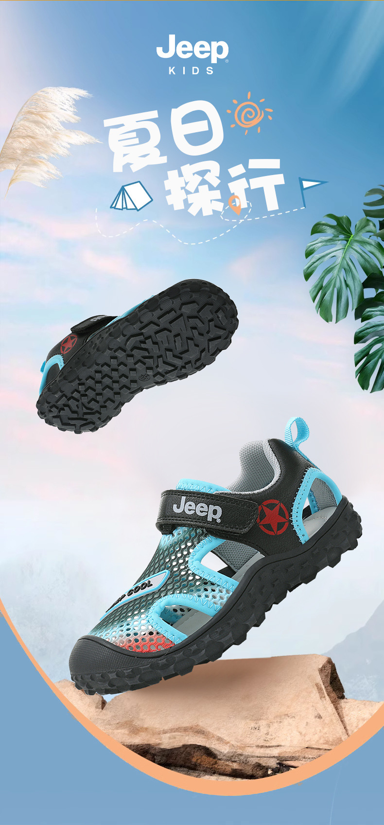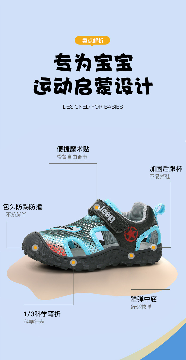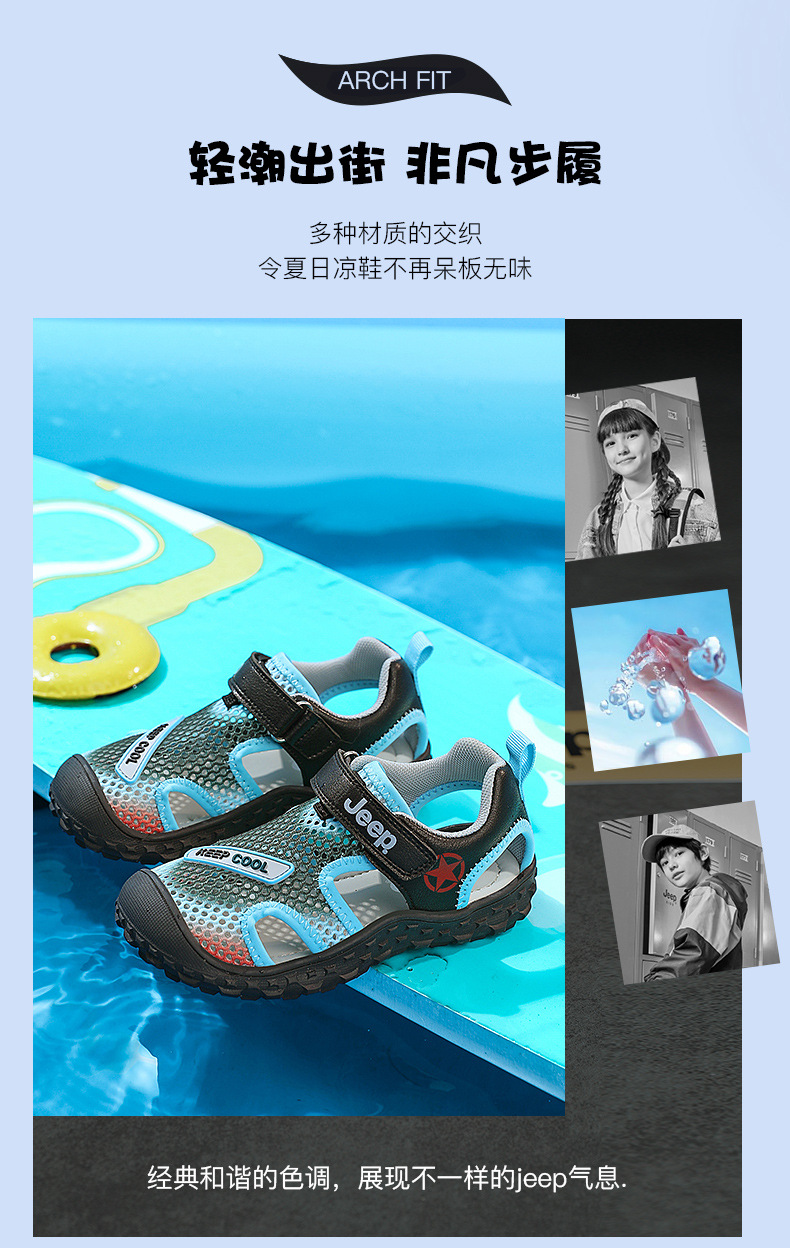 지프 걸스 샌들 2024 새로운 올 매치 벨크로 브룩 할로우 캐주얼 신발 소년 스포츠 신발
