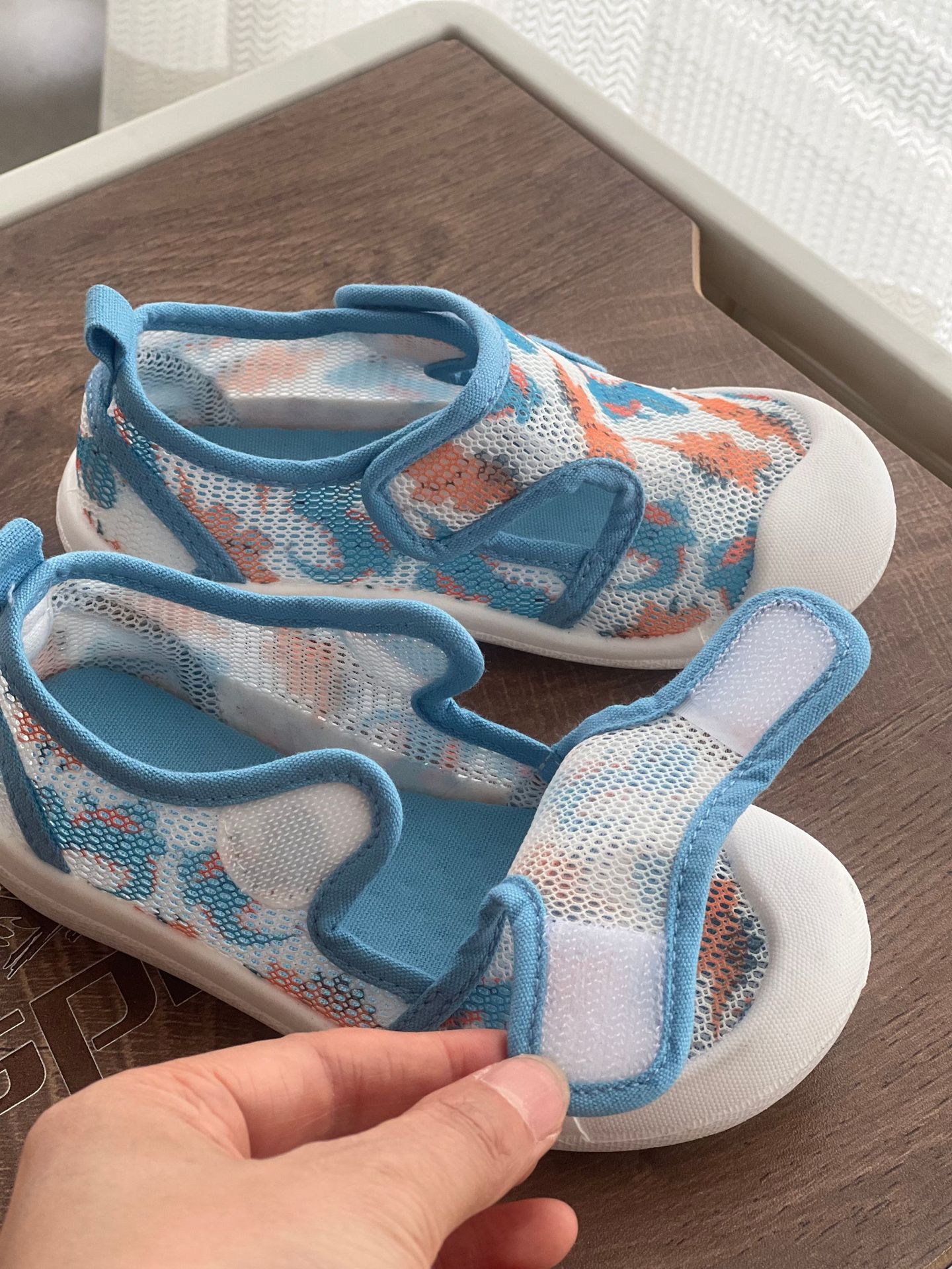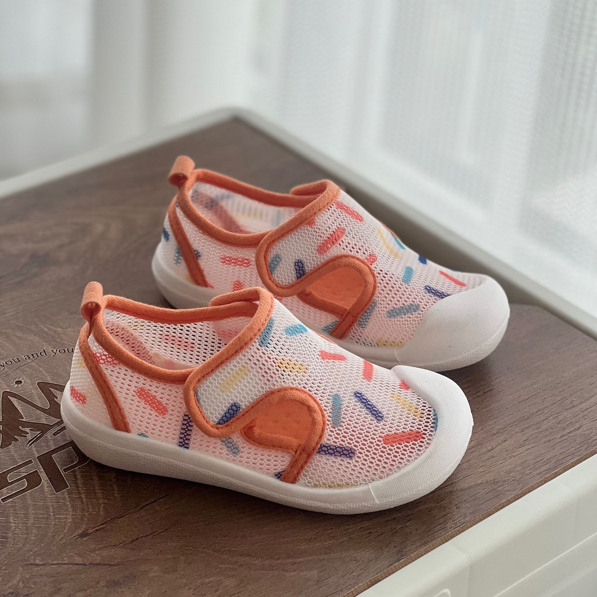 26 여름용 통기성 메쉬 하프 샌들 남녀공용 유치원용 벨크로 실내외 겸용 신발