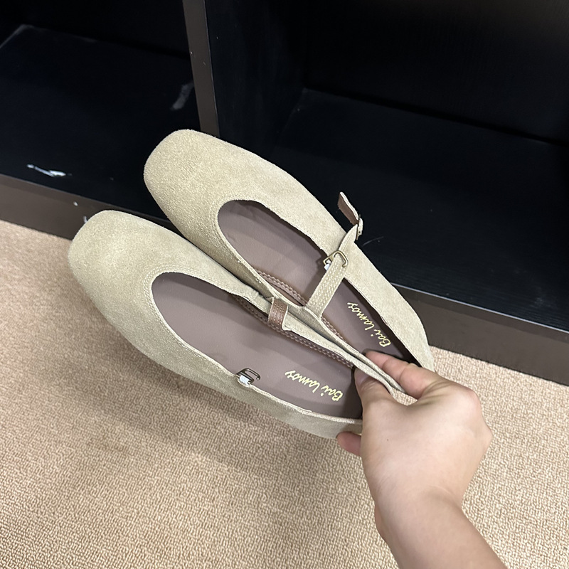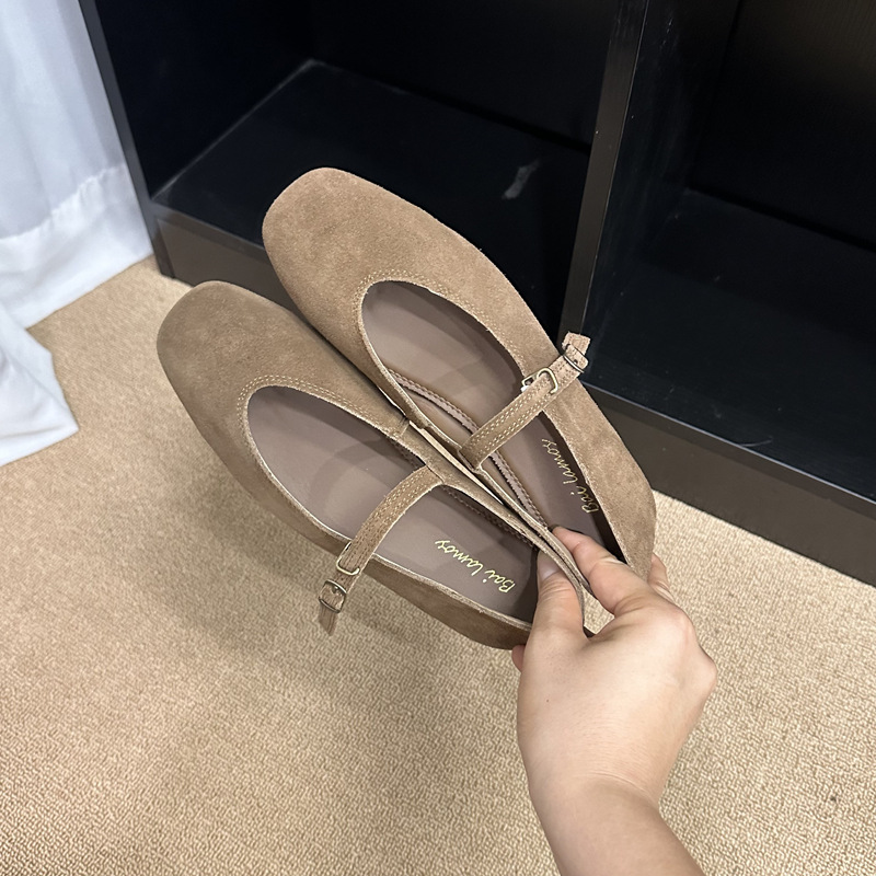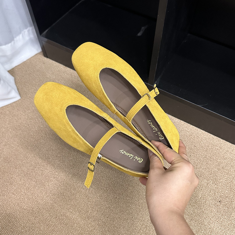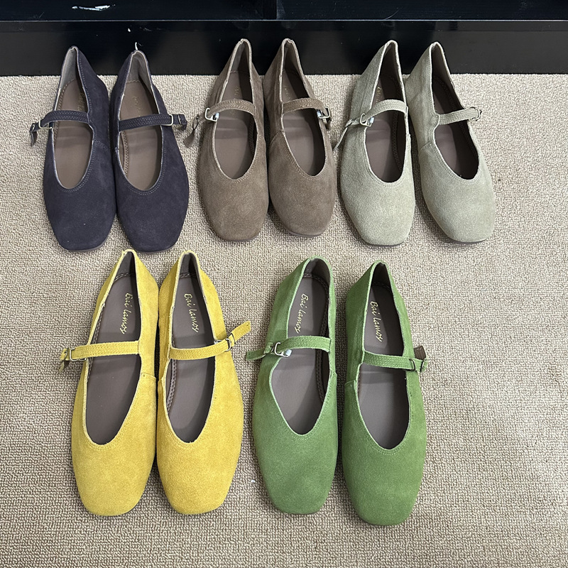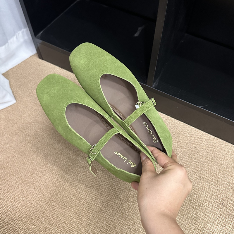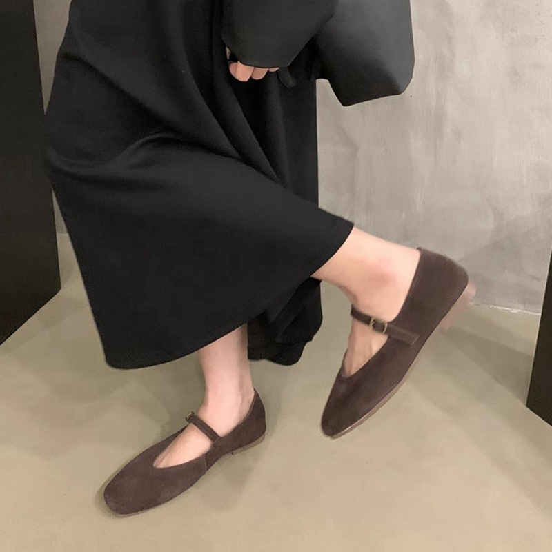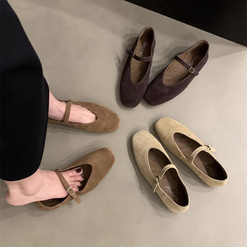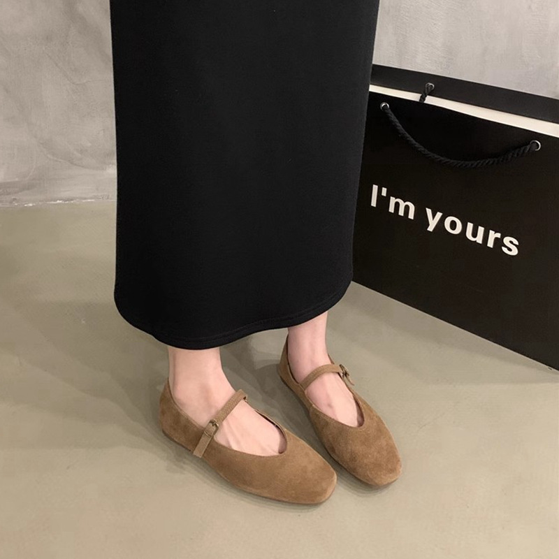 플랫 스퀘어 헤드 메리 제인 신발 여성 신발 2023 새로운 봄과 가을 올 매치 레트로 소프트 솔 밀크 신발스토어 가기
