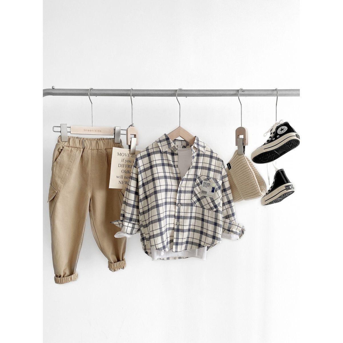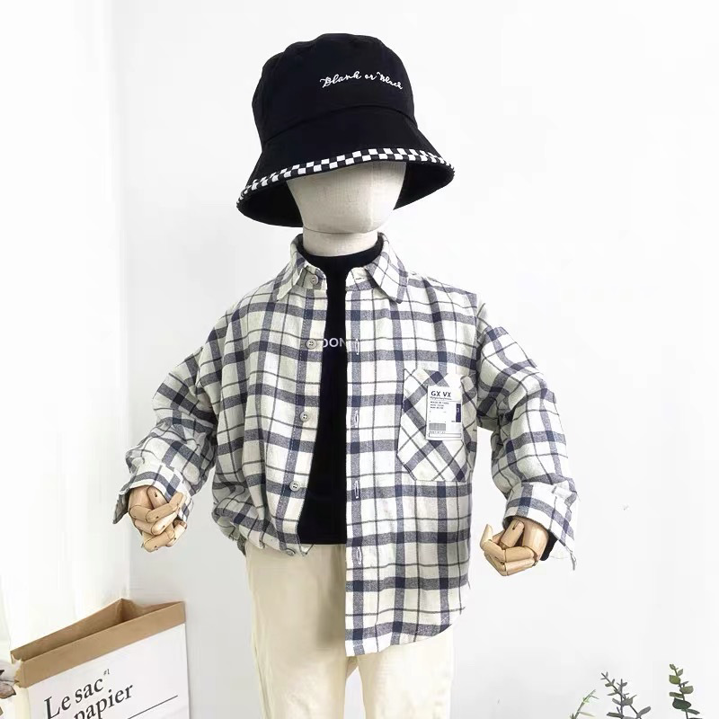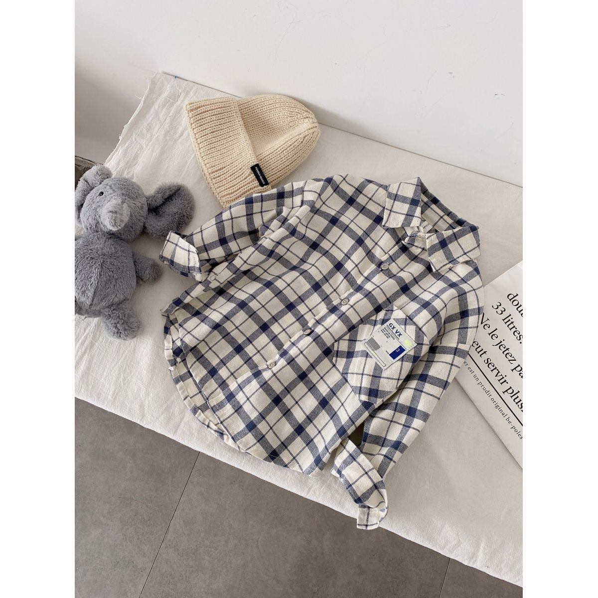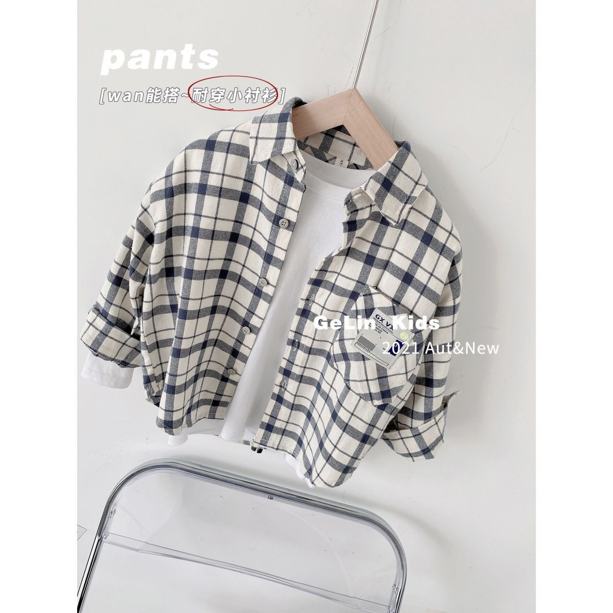 새로운 어린이 셔츠 아기 남성용 세련된 캐주얼 트렌디 코튼 체크 셔츠 가을 어린이 패션 옷깃 카디건스토어 가기
