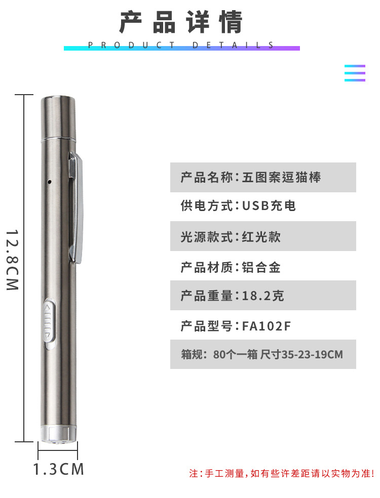 아마존 고양이 장난감 고양이 인터랙티브 Usb 충전식 펜 모양의 레이저 멀티 패턴 적외선 고양이 테이