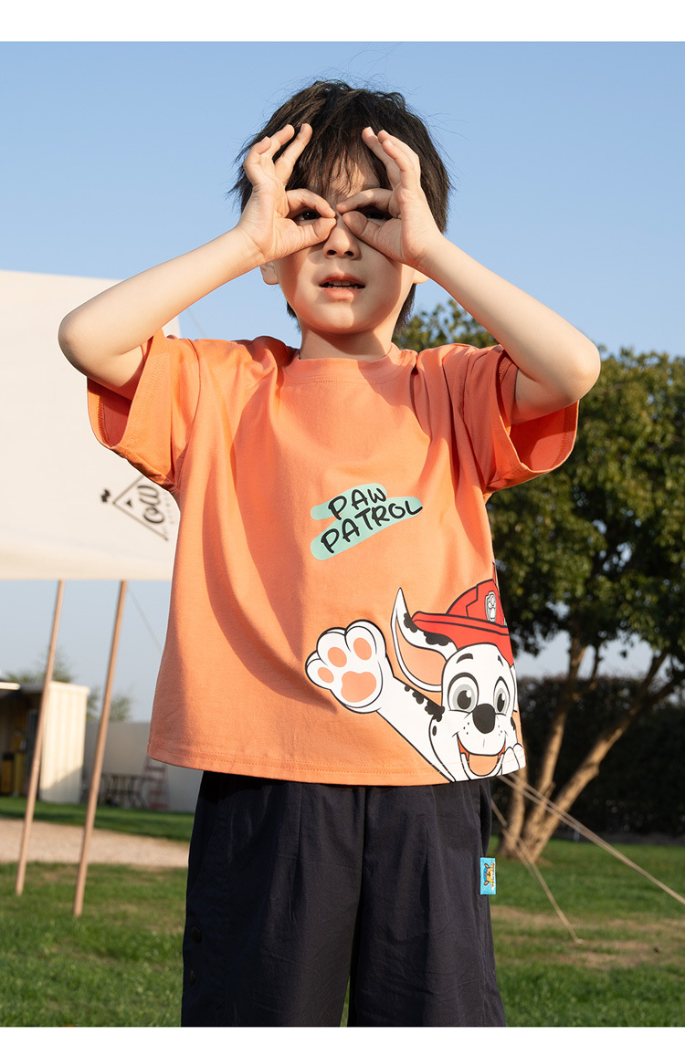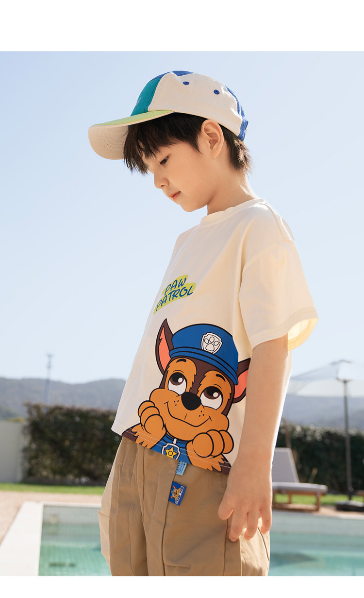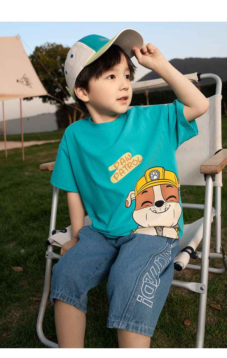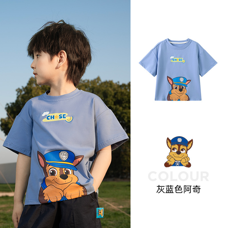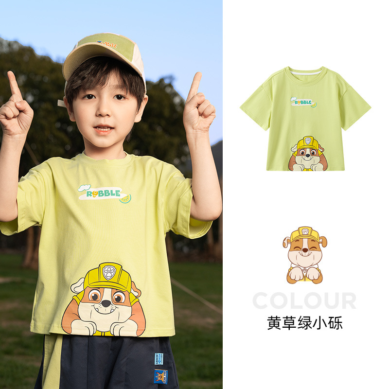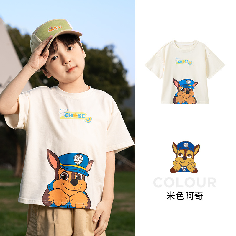 Paw Paw 팀 소년 반팔 티셔츠 여름 새 스타일 순수 코튼 아동 탑 여름 아기 소년 바닥 셔츠 재고 있음