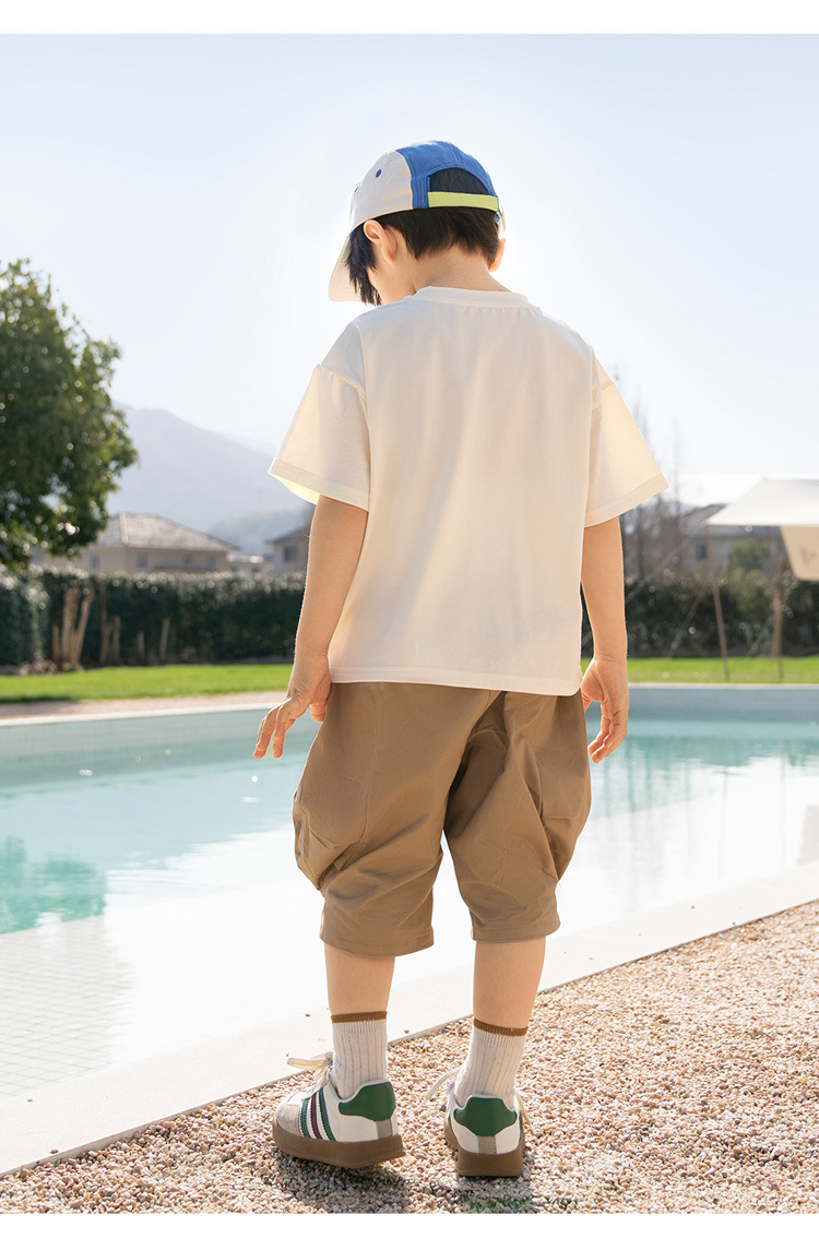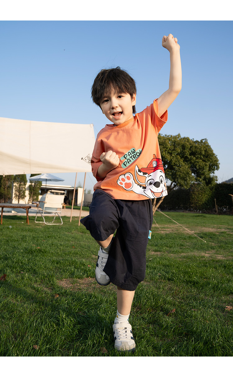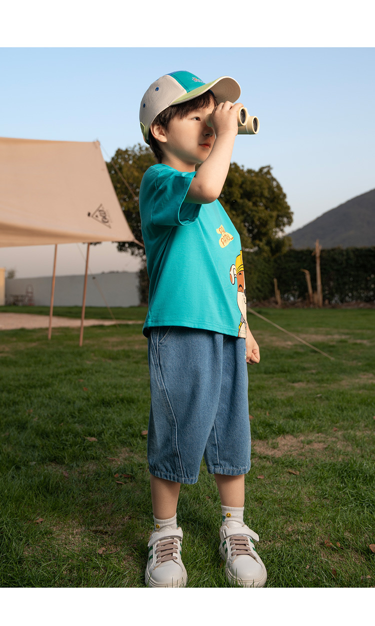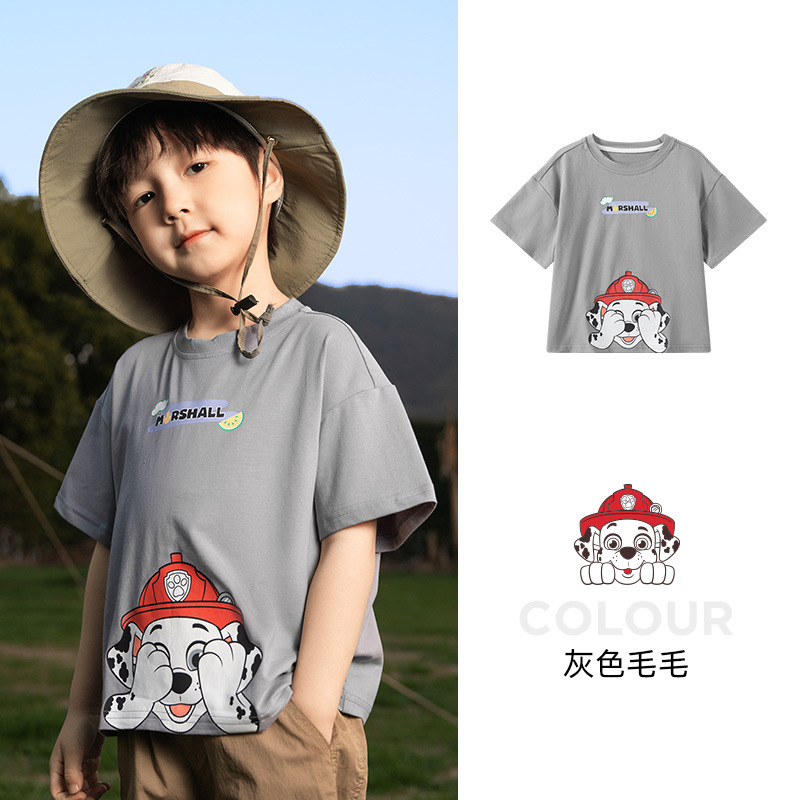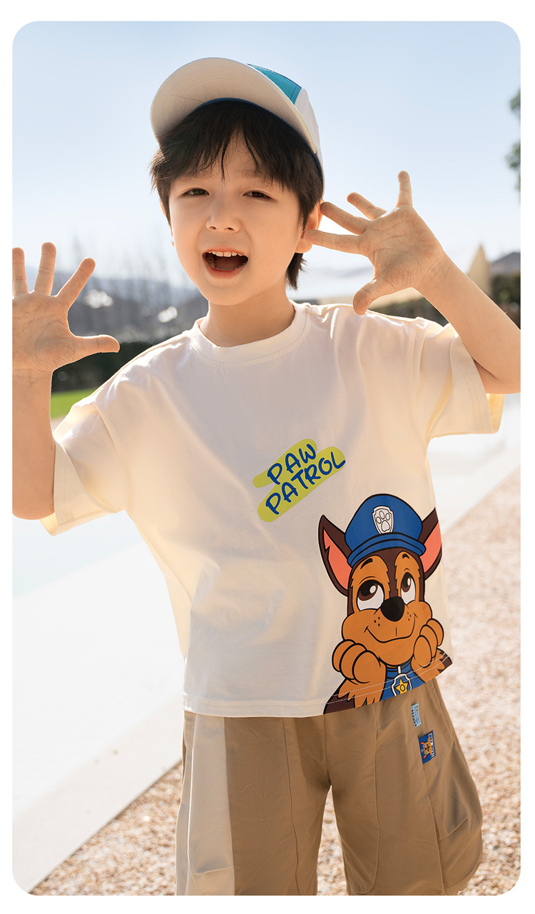 Paw Paw 팀 소년 반팔 티셔츠 여름 새 스타일 순수 코튼 아동 탑 여름 아기 소년 바닥 셔츠 재고 있음