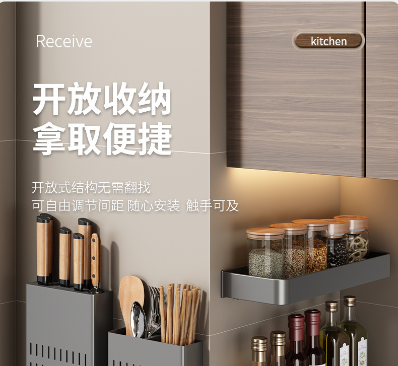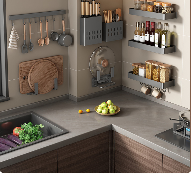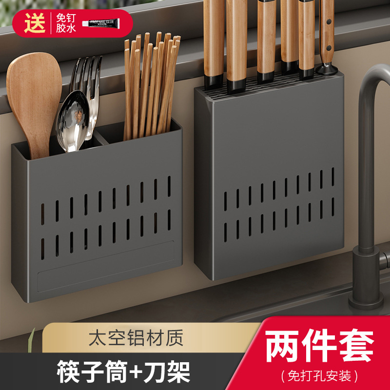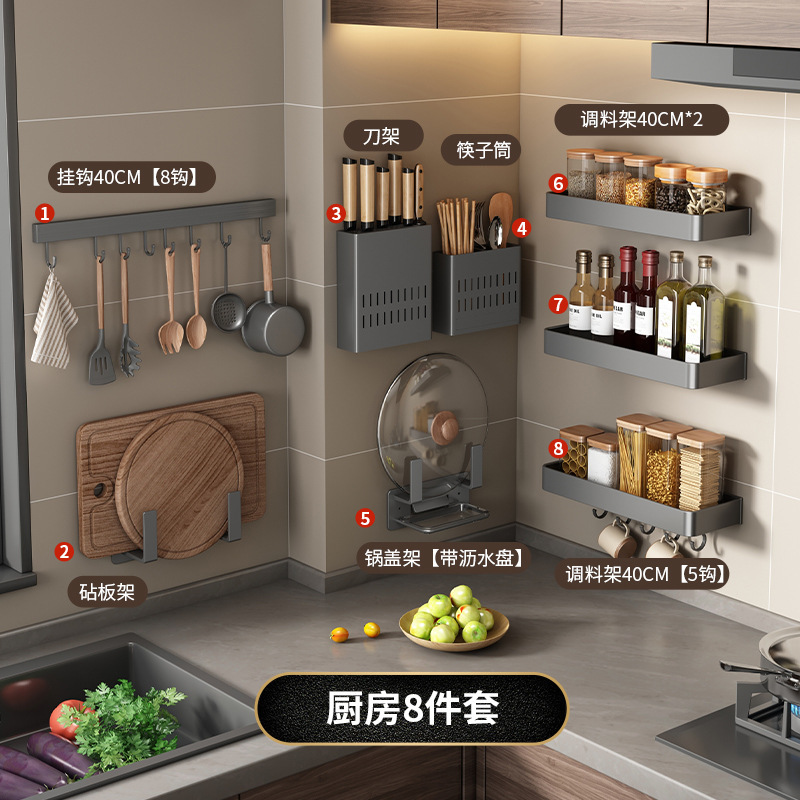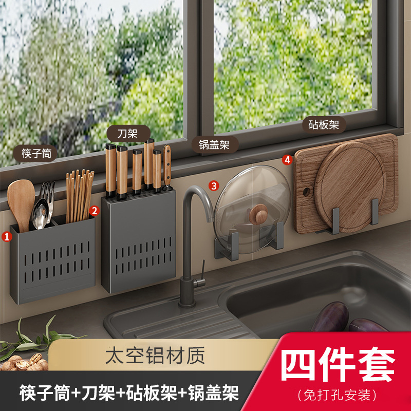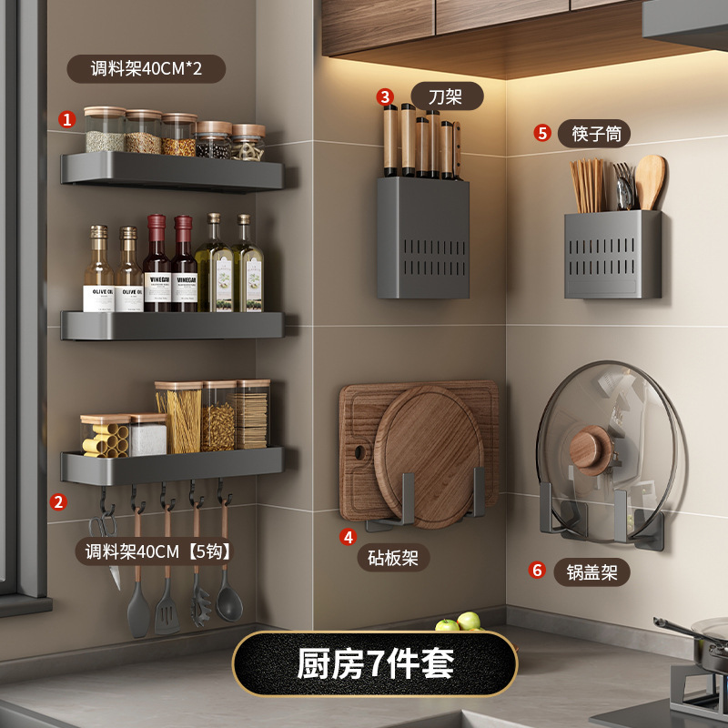 주방 보관 랙 펀치 무료 다기능 조미료 젓가락 칼 랙 벽 장착 가정용 제품 보관 랙