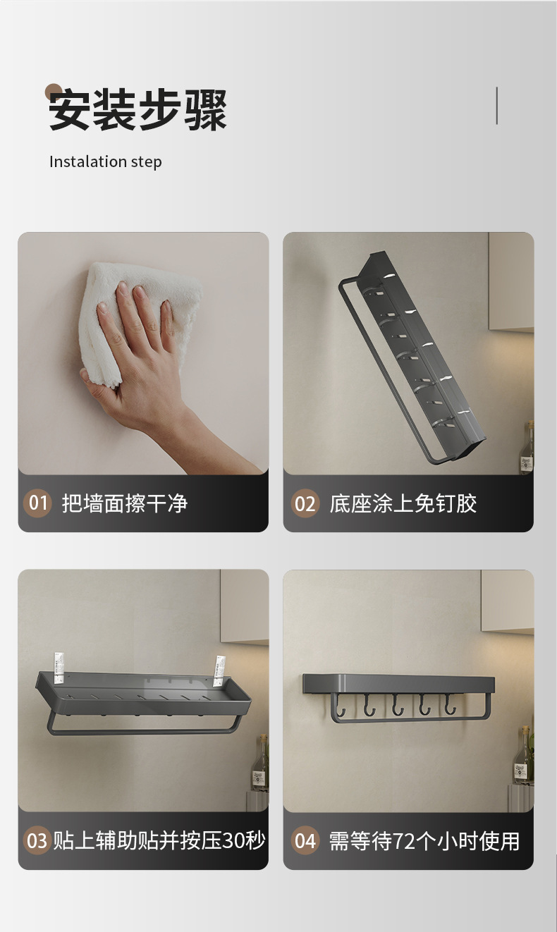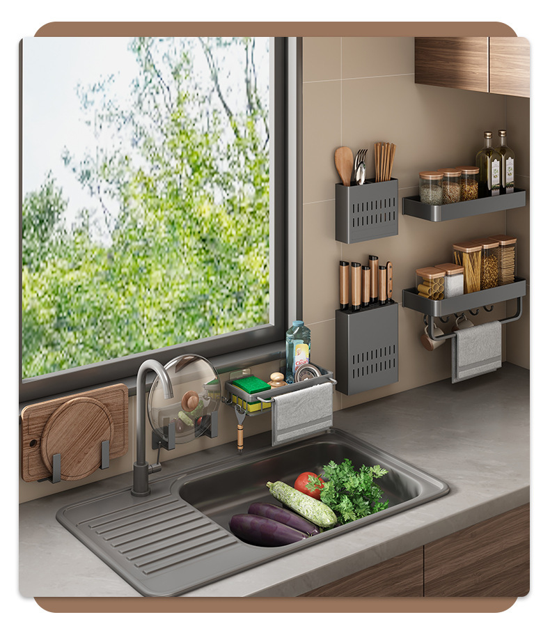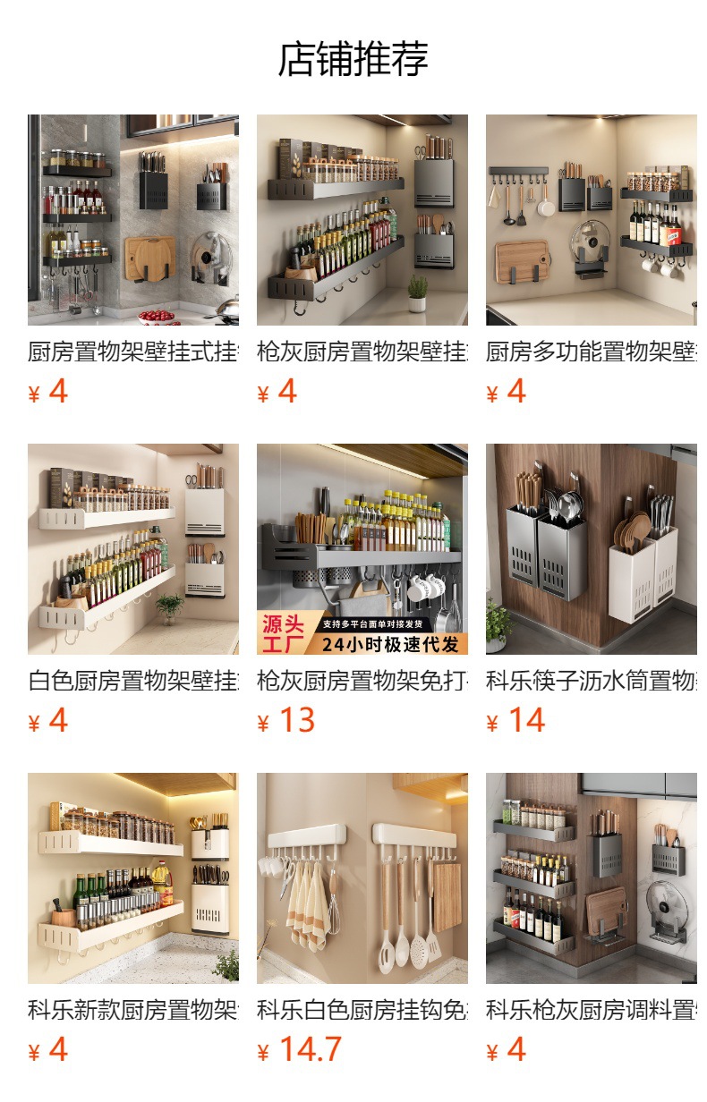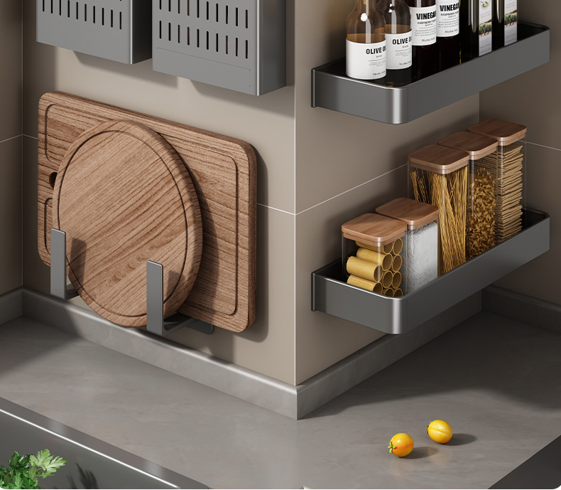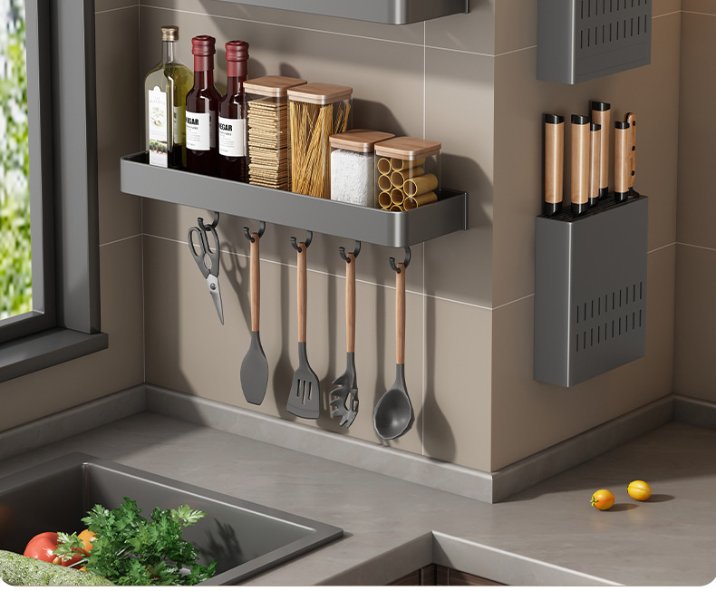 주방 보관 랙 펀치 무료 다기능 조미료 젓가락 칼 랙 벽 장착 가정용 제품 보관 랙