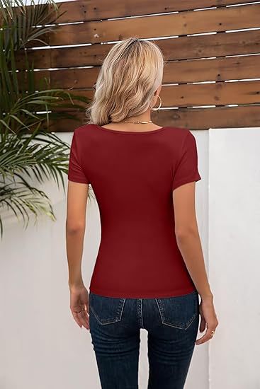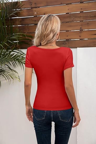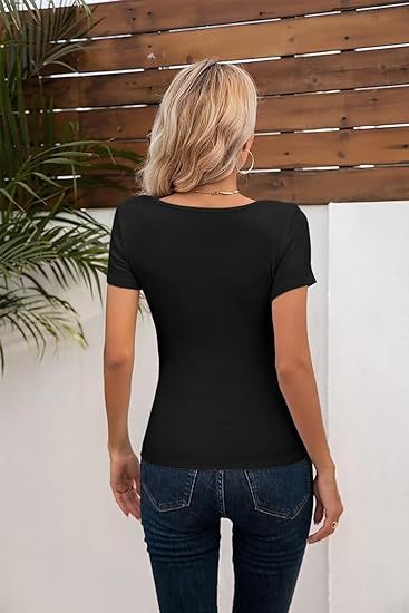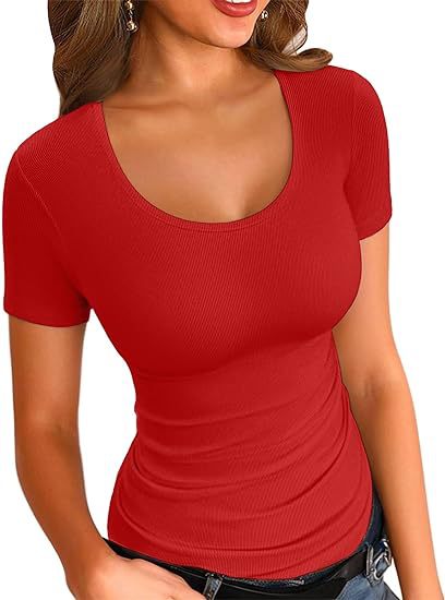 국경 간 아마존 여름 여자 낮은 라운드 넥 캐주얼 짧은 소매 유럽과 미국의 모든 경기 슬림 핏 기본 탑스토어 가기