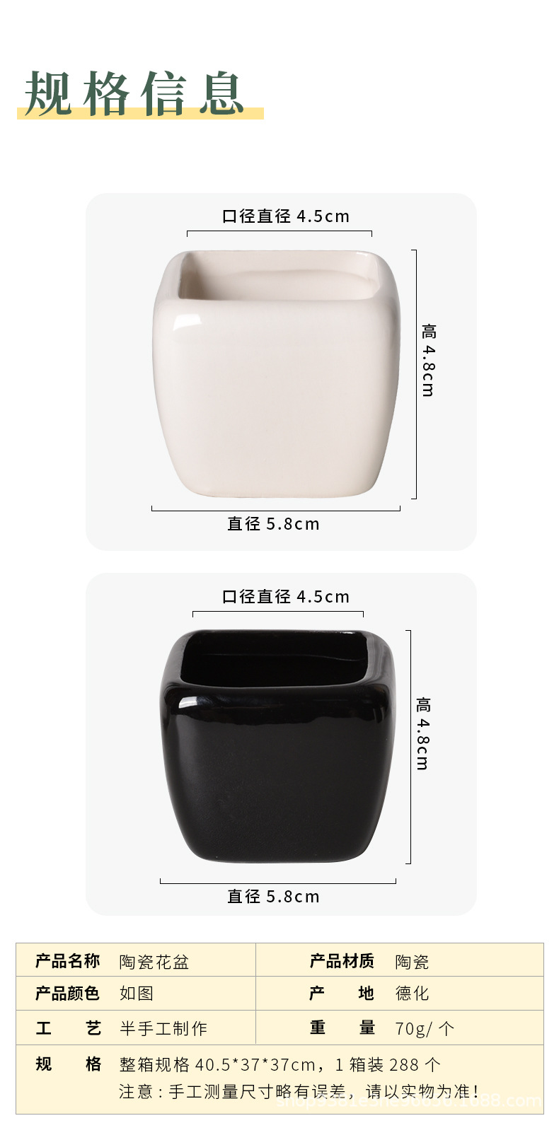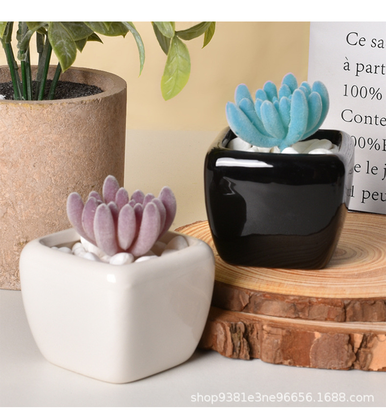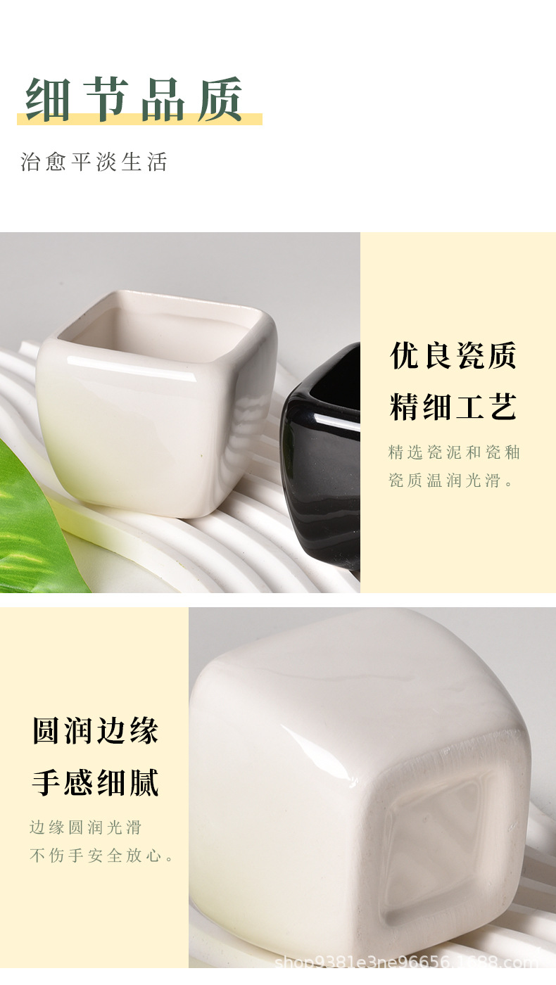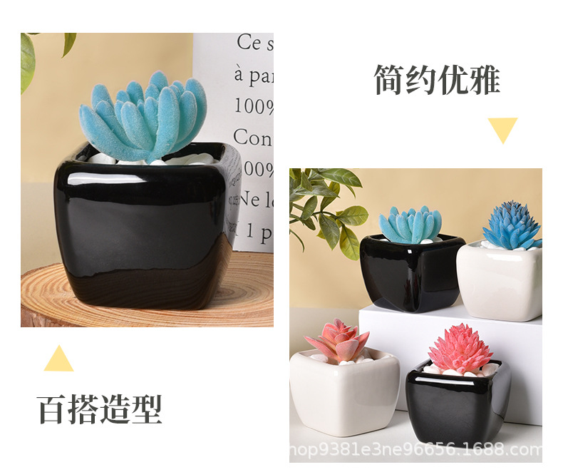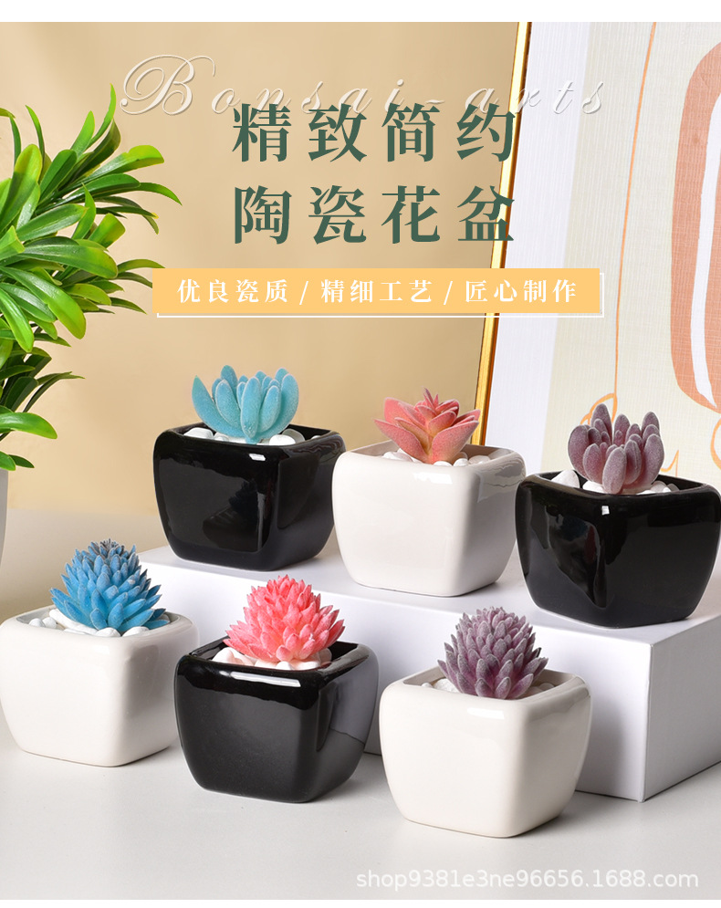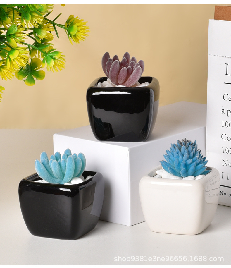 미니 작은 사각형 흑백 세라믹 즙이 많은 냄비 창조적 인 간단한 홈 데스크탑 장식 엄지 화분 장식품