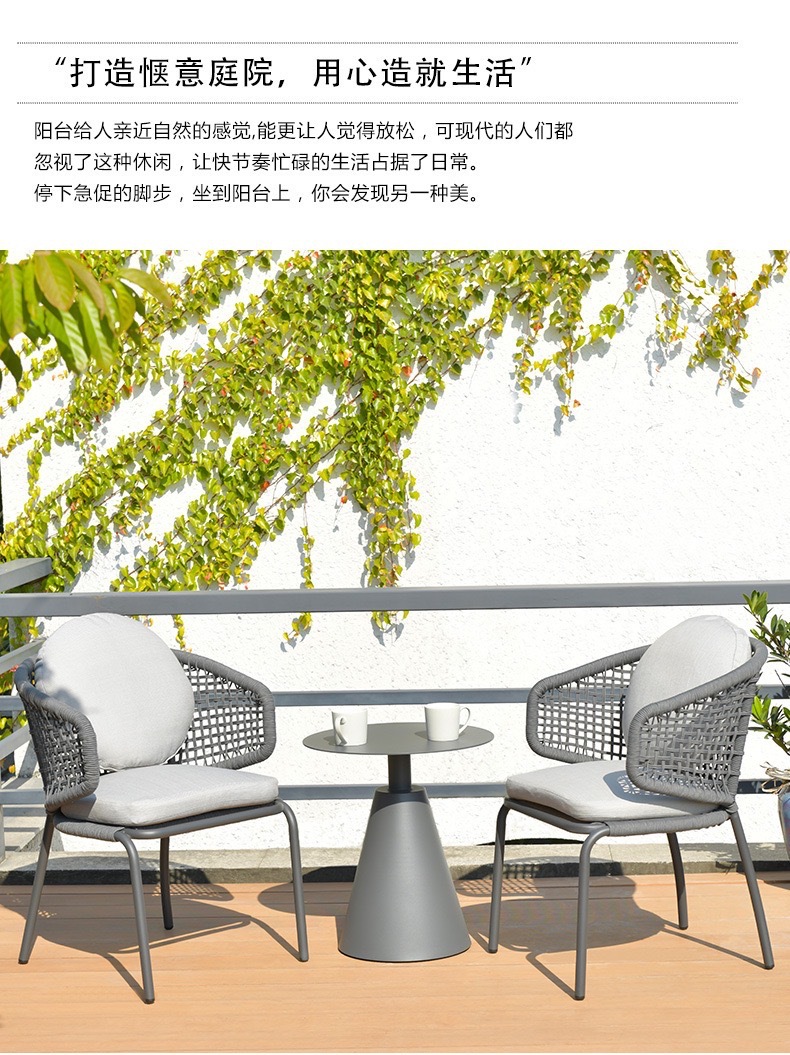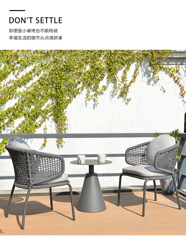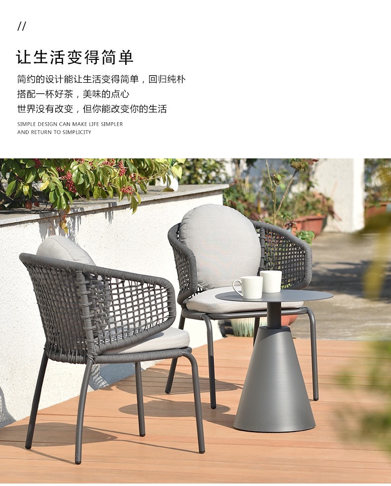 야외 발코니 레저 등나무 의자 안뜰 정원 테라스 작은 테이블과 의자 레스토랑 호텔 식당 의자 조합 간단한 3 피스 세트