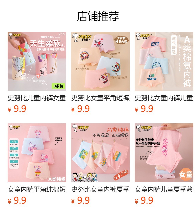 스누피 걸스 속옷 복서 코튼 반바지 아기 소녀와 어린 소녀를위한 어린이 복서 속옷스토어 가기