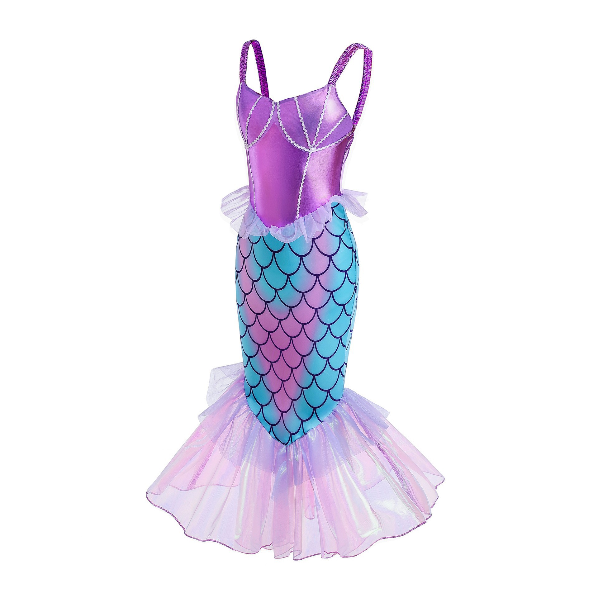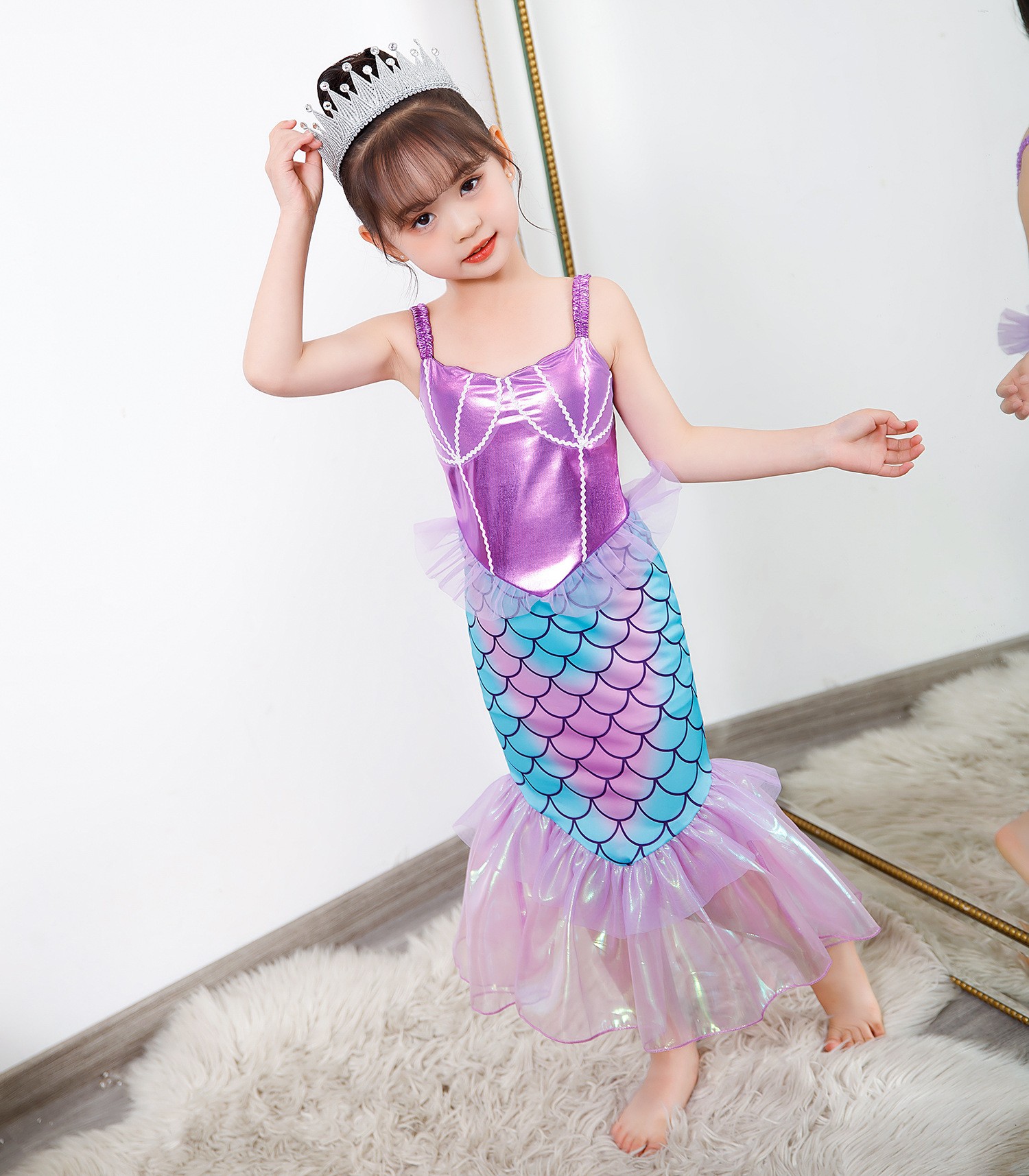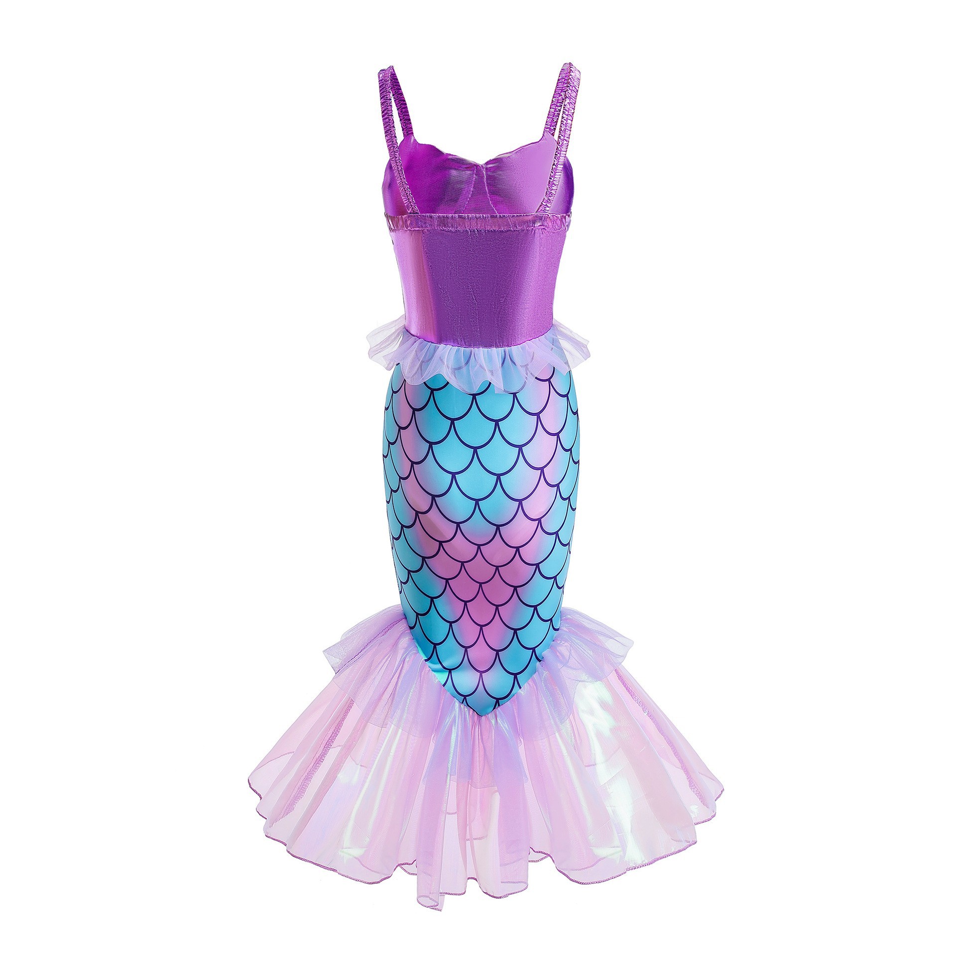 2024 인어 공주 원피스 어린이 옷 소녀 봄과 여름 새로운 아기 원피스 보라색 메쉬 스커트스토어 가기