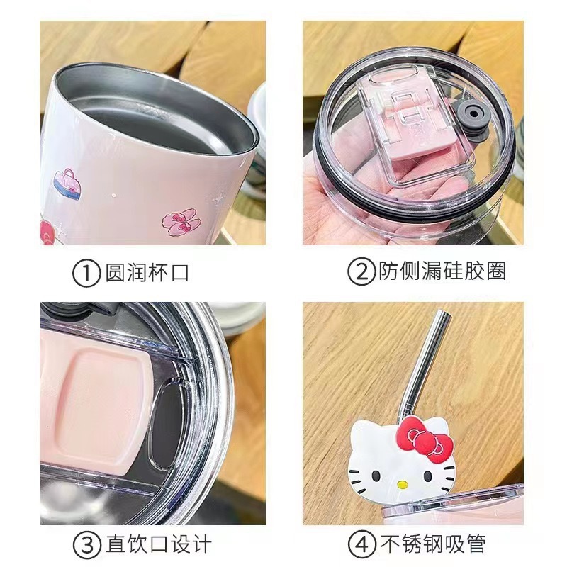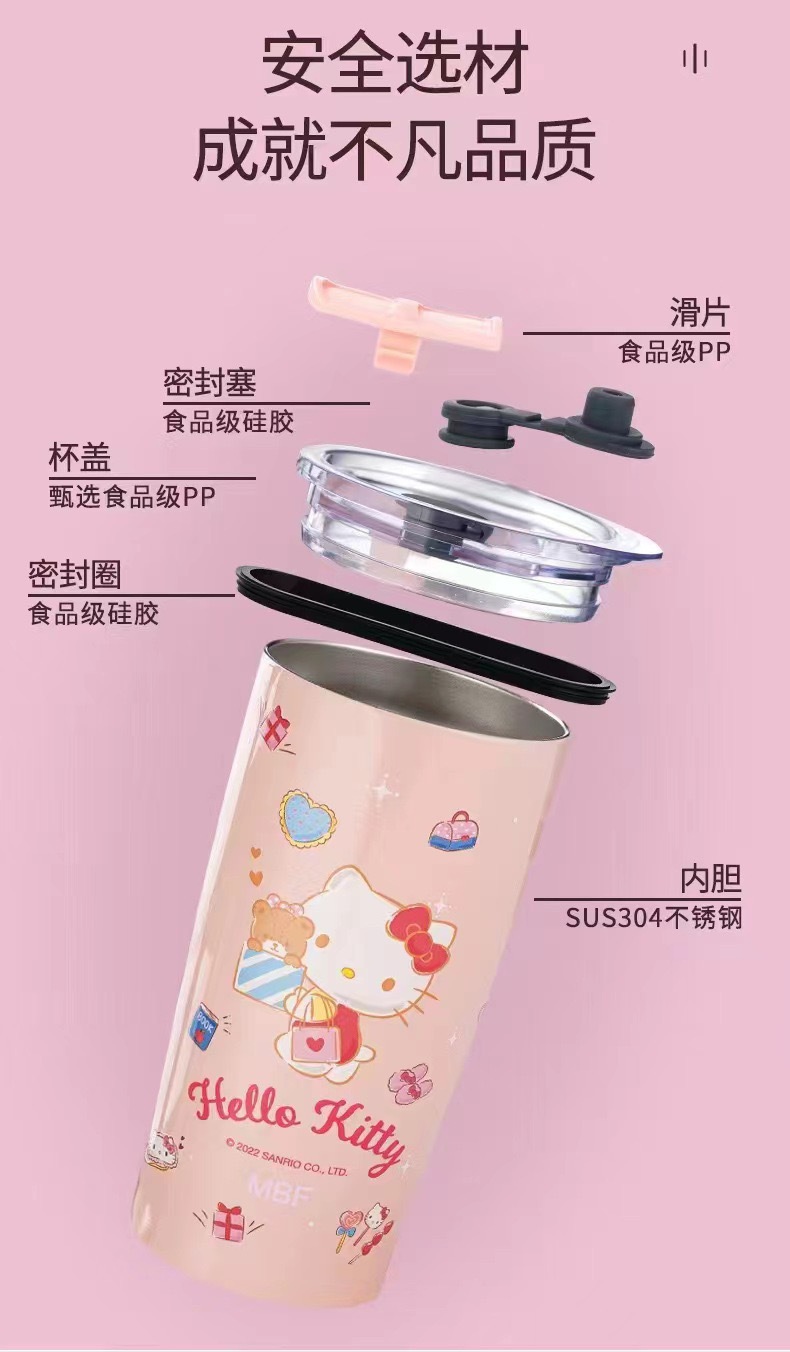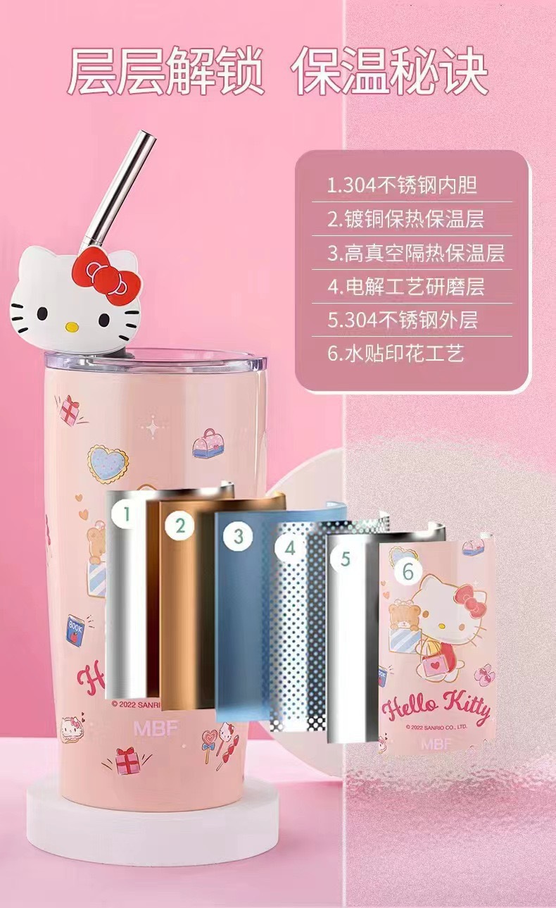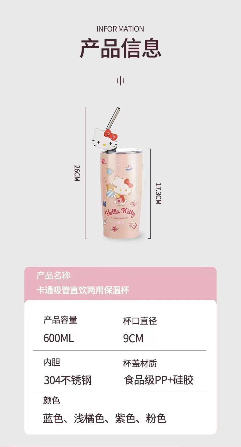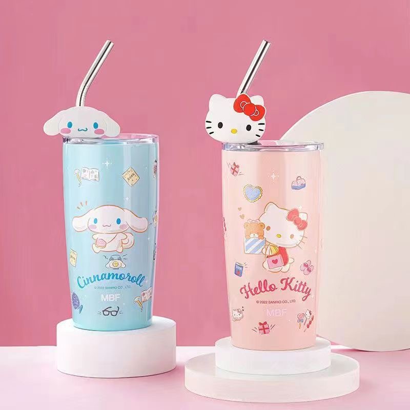 국경 간 폭발 대외 무역 산리오 흡입 컵 스테인레스 스틸 보온병 만화 패턴 귀여운 실리콘 만화 컵