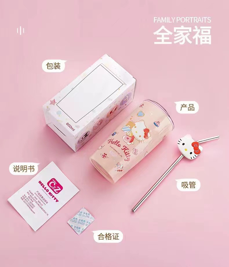 국경 간 폭발 대외 무역 산리오 흡입 컵 스테인레스 스틸 보온병 만화 패턴 귀여운 실리콘 만화 컵스토어 가기
