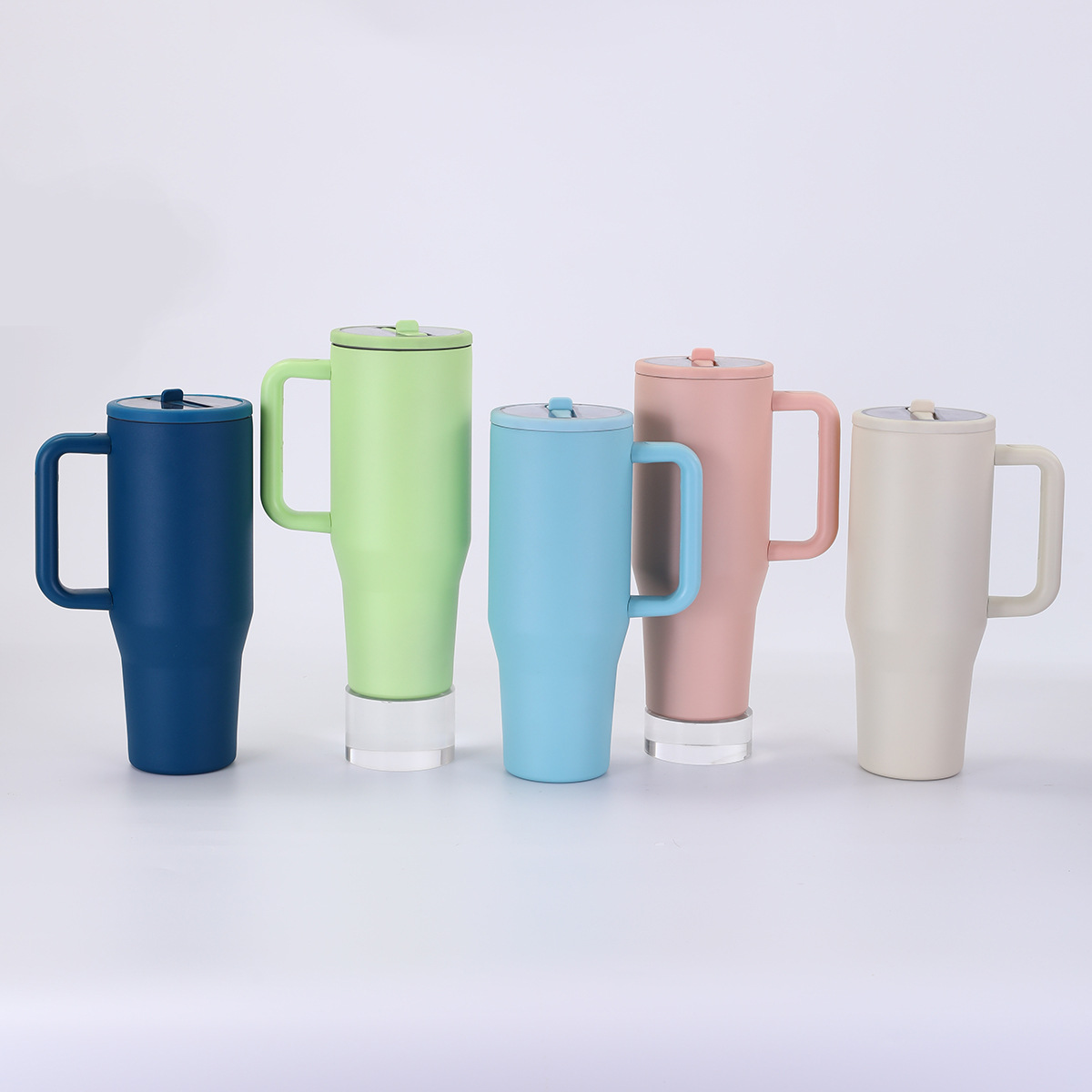 국경 40oz 핸들 자동차 컵 304 스테인레스 스틸 짚 보온병 컵 대용량 차가운 얼음 깡패 컵 도매