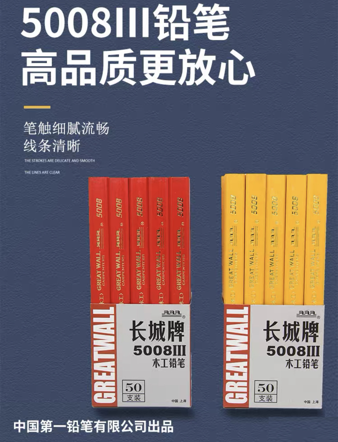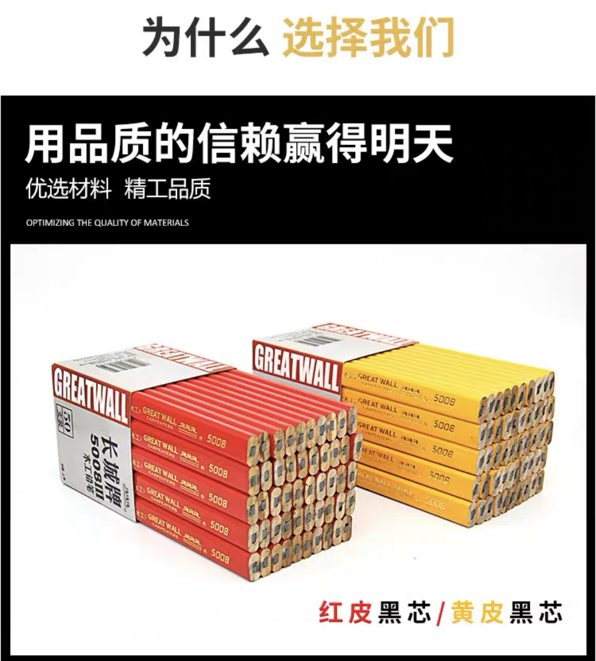 정품 만리장성 목공 연필 5008 평면 두꺼운 검은 코어 라인 그리기 엔지니어링 연필 사이트 마킹 연필스토어 가기