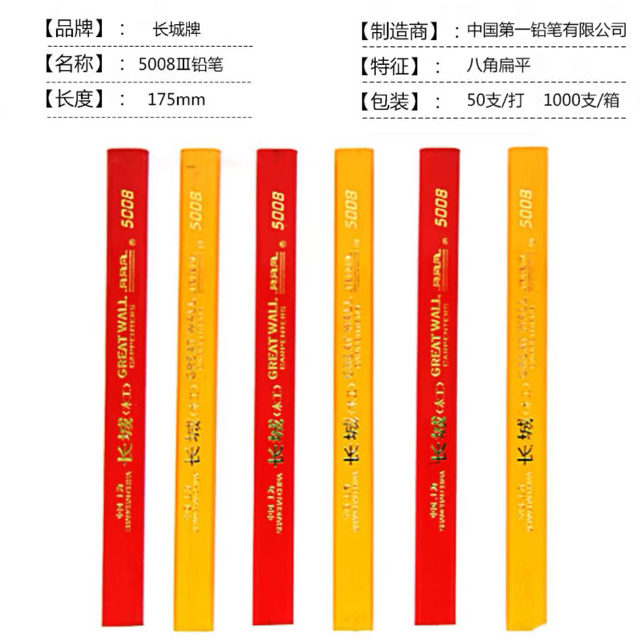 정품 만리장성 목공 연필 5008 평면 두꺼운 검은 코어 라인 그리기 엔지니어링 연필 사이트 마킹 연필