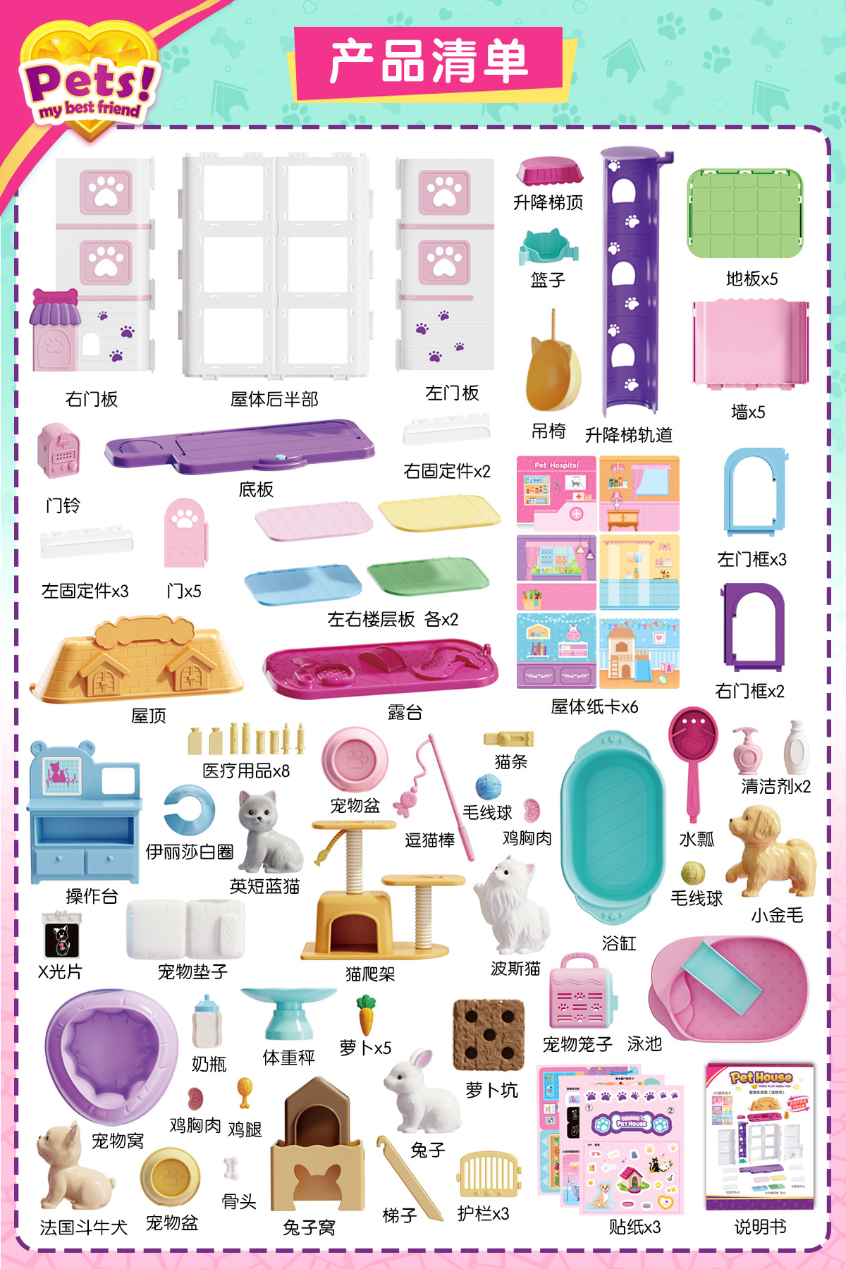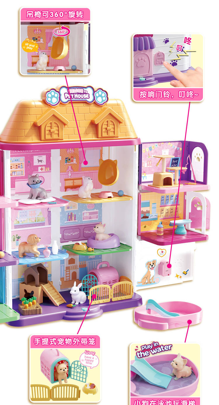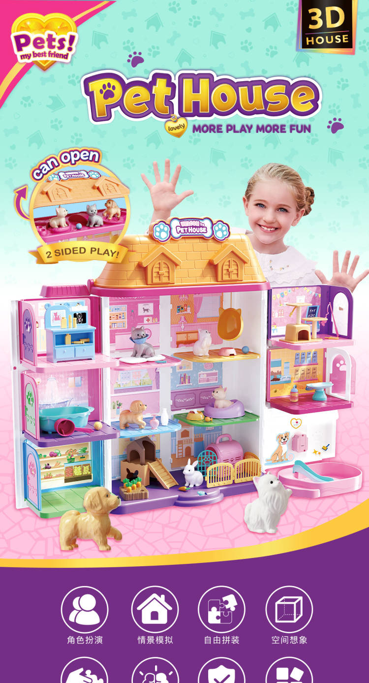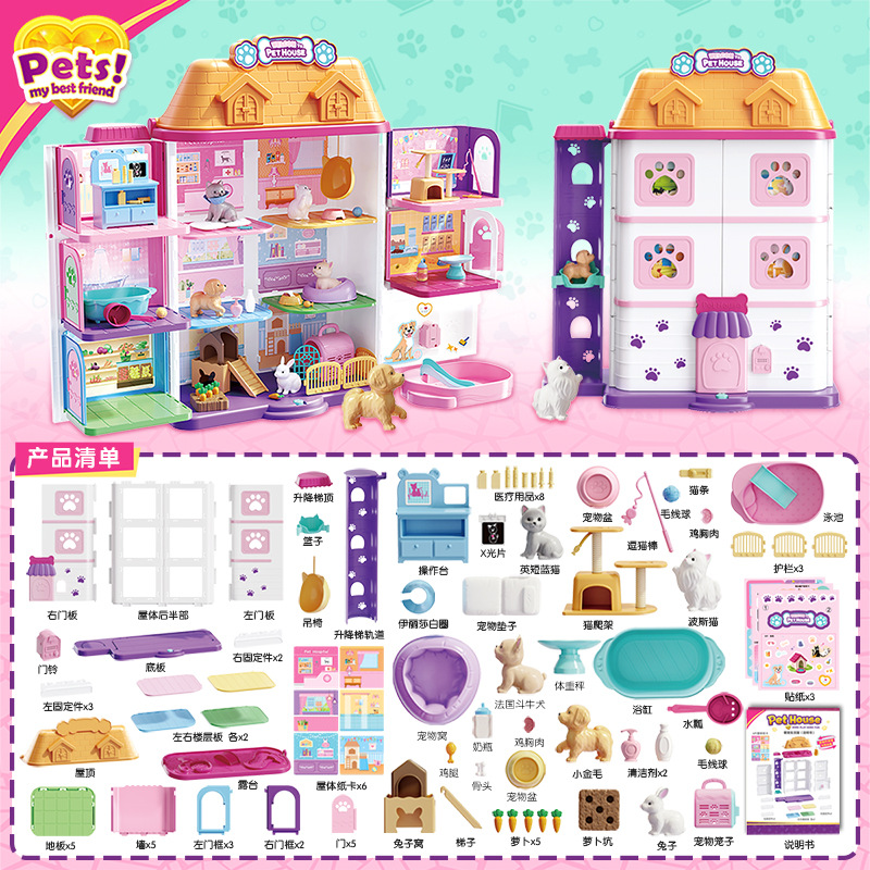 어린이용 고급 모형 애완동물 집 놀이 역할극 세트 조립식 DIY 선물 상자 5세 여자아이 선물