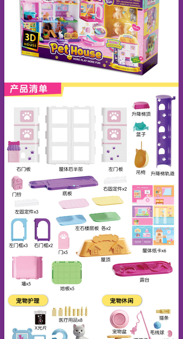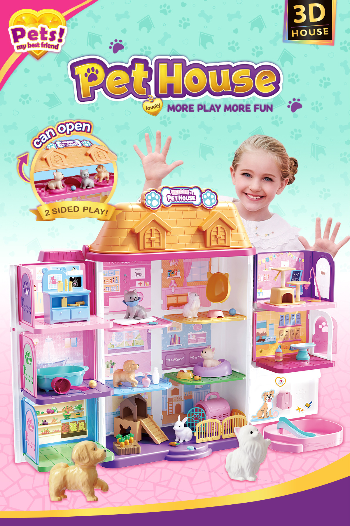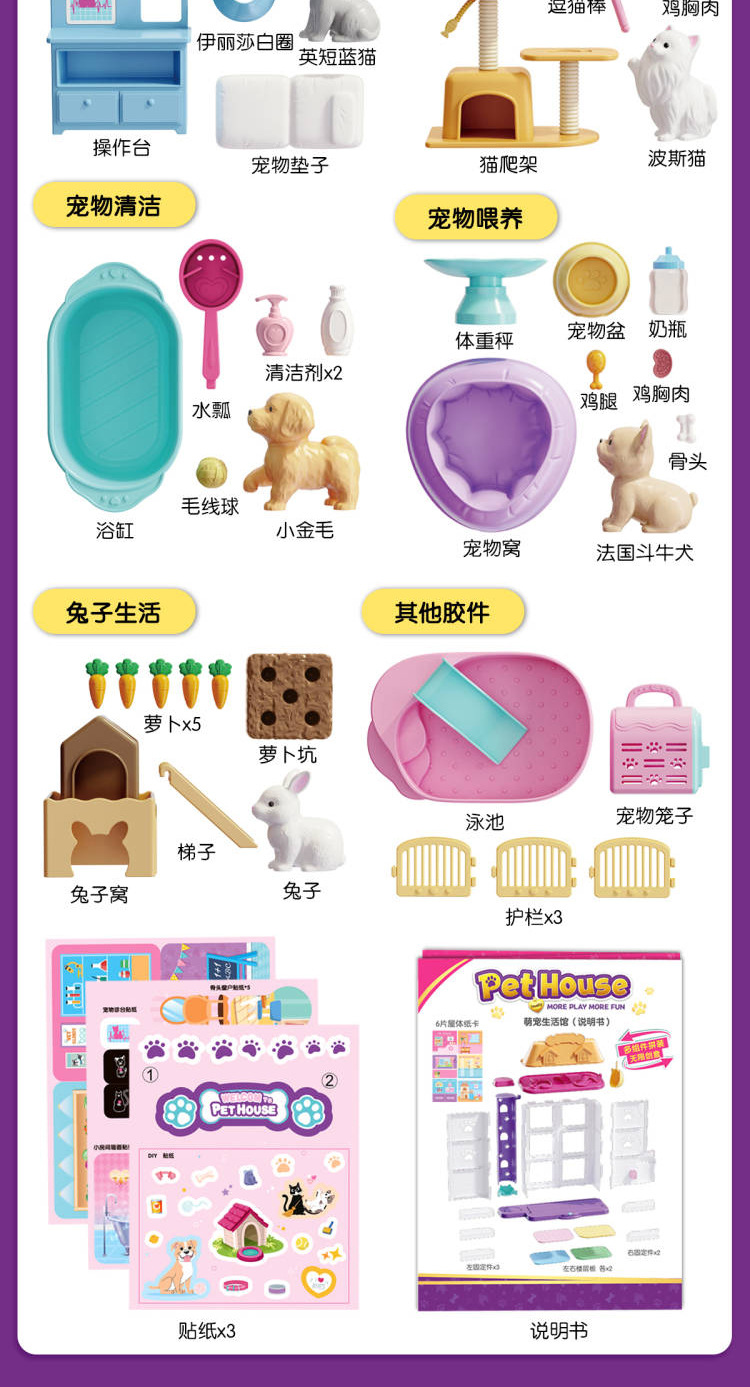 어린이용 고급 모형 애완동물 집 놀이 역할극 세트 조립식 DIY 선물 상자 5세 여자아이 선물