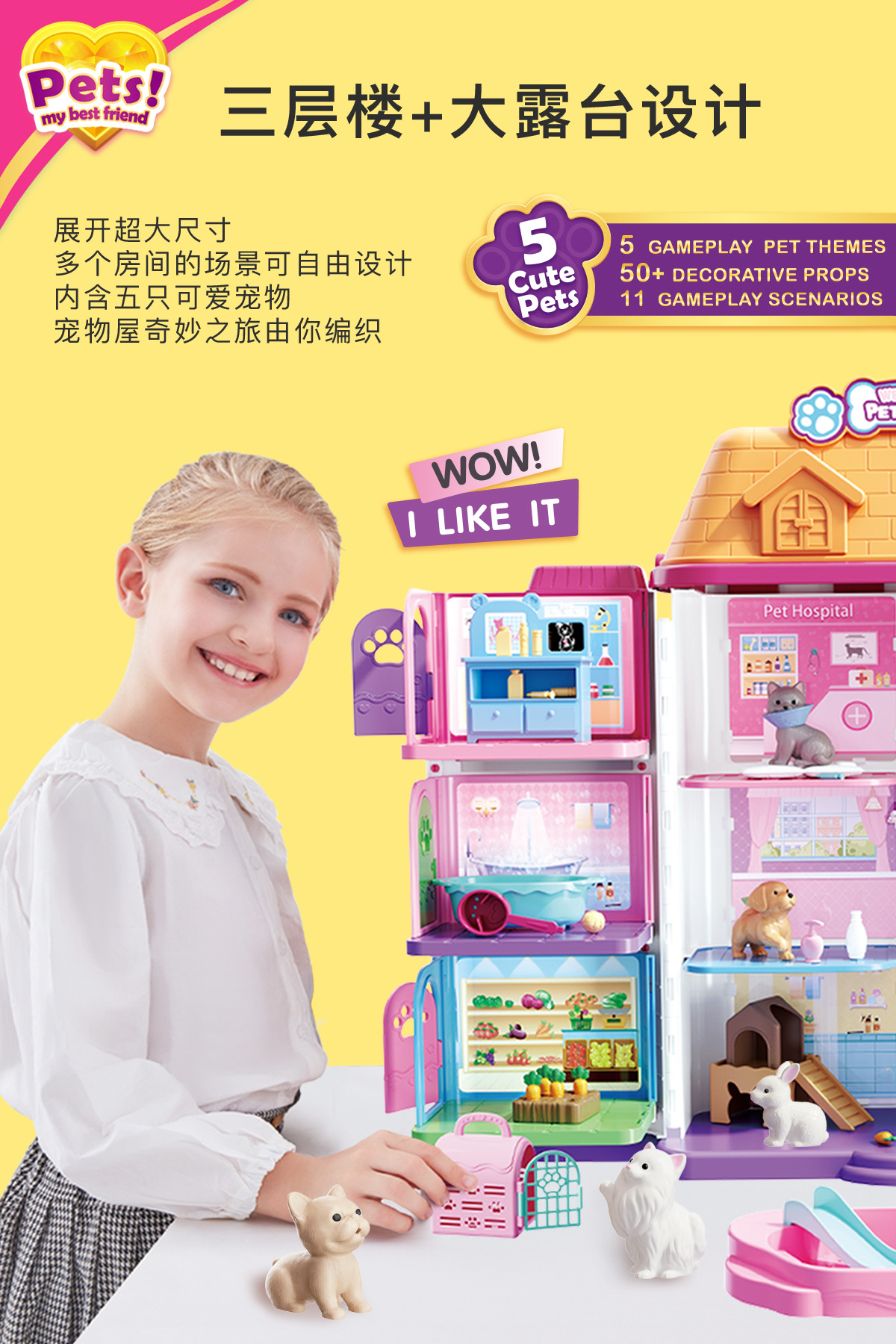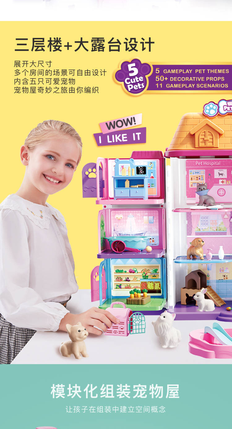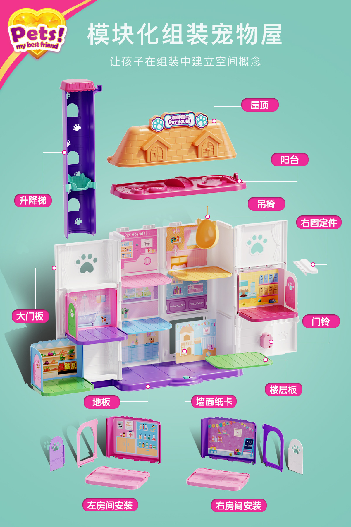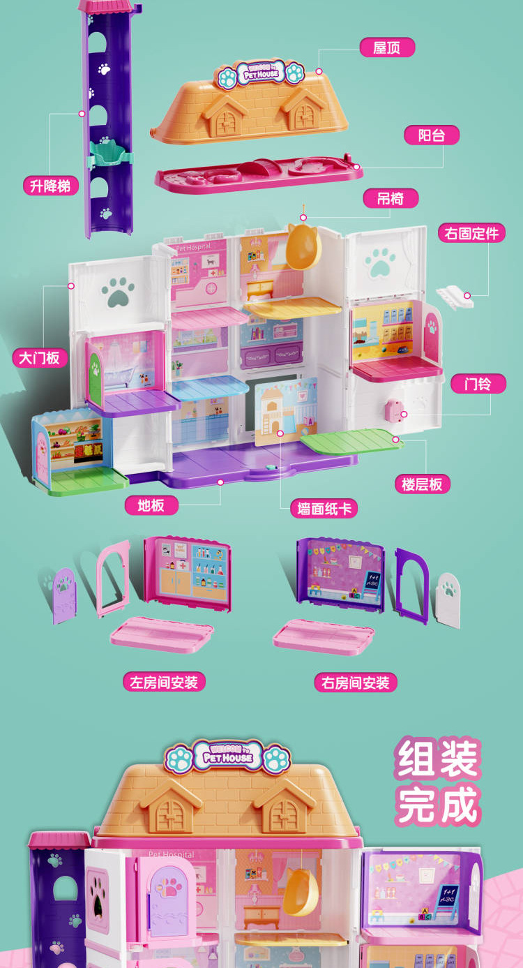 어린이용 고급 모형 애완동물 집 놀이 역할극 세트 조립식 DIY 선물 상자 5세 여자아이 선물스토어 가기