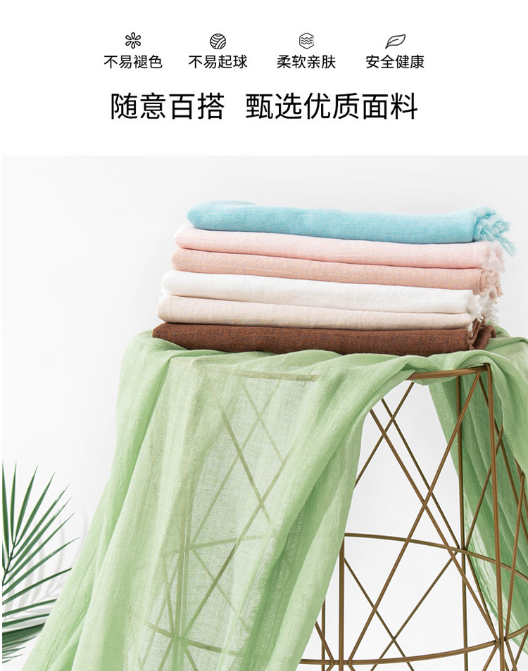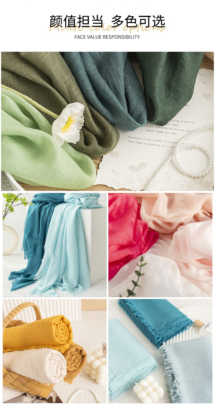 봄과 여름 스카프 모조화와 린넨 단색 간단한 선 스크린 목도리 여성의 고급 긴 실크 스카프 거즈 여행 스카프 도매스토어 가기