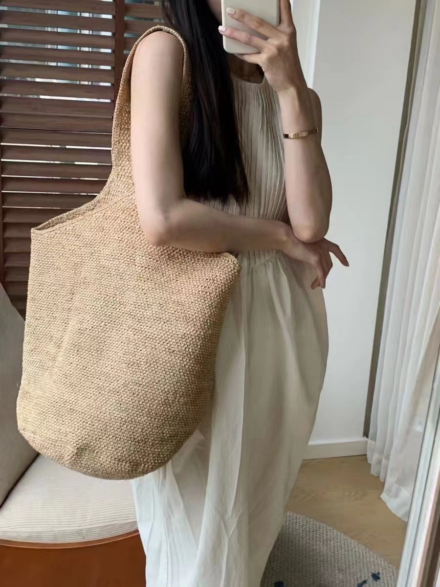 라피아 짠 가방 여성 여름 패션 다목적 대용량 어깨 토트 백 해변 휴가 해변 가방 버킷 백