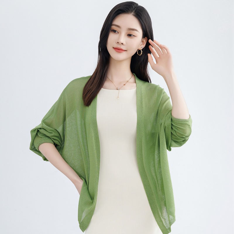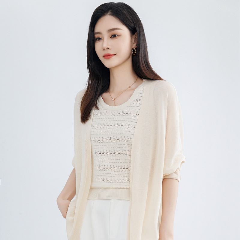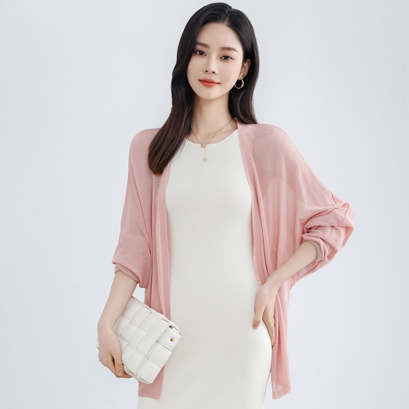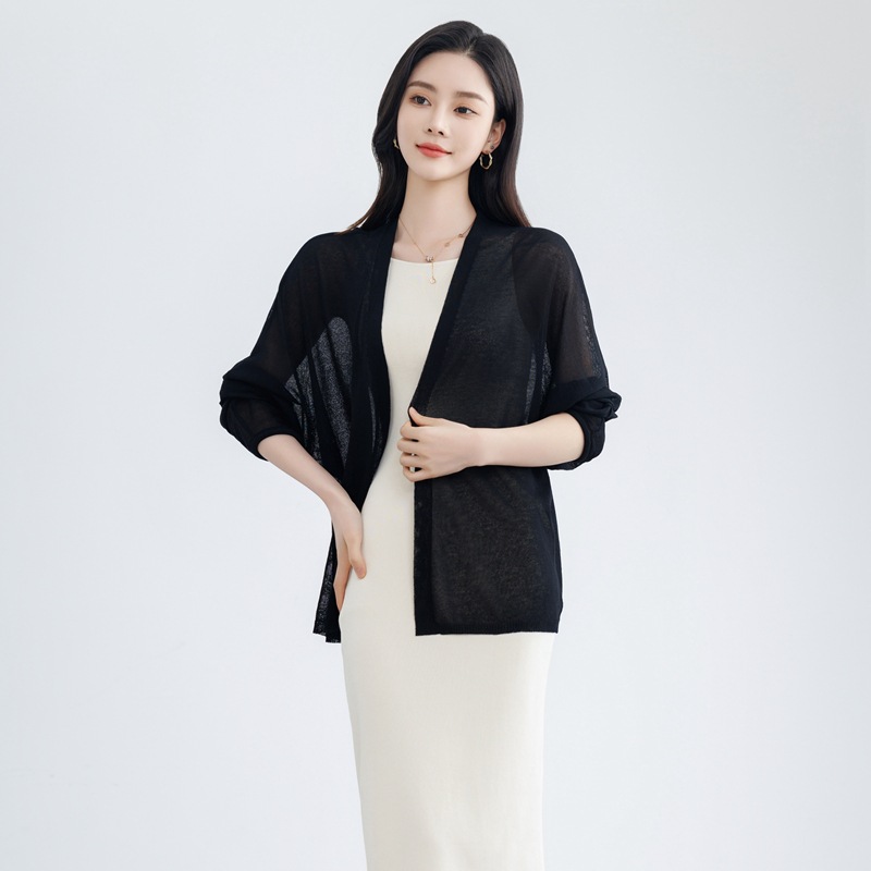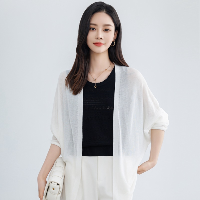 솔리드 컬러 태양 보호 중간 길이의 모방 리넨 니트 스웨터 여성용 카디건 올매치 긴소매 느슨한 얇은 목도리 재킷