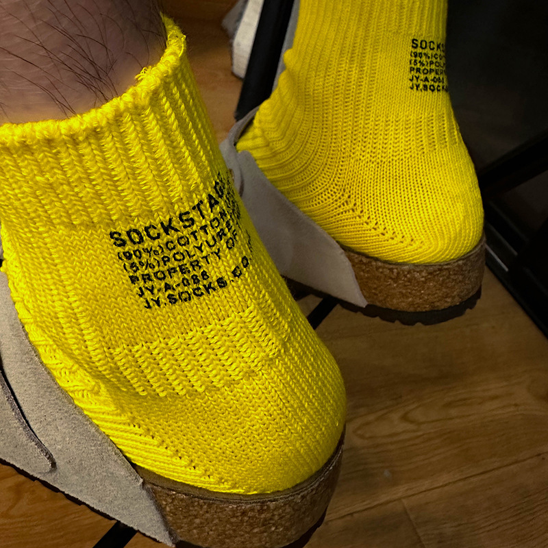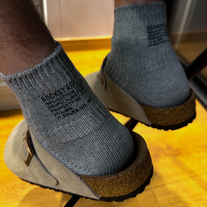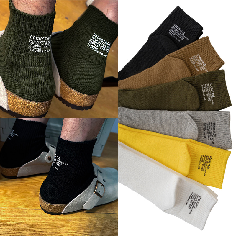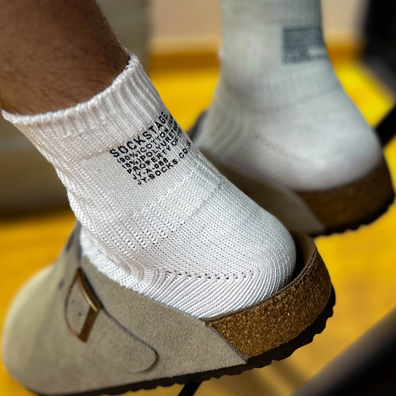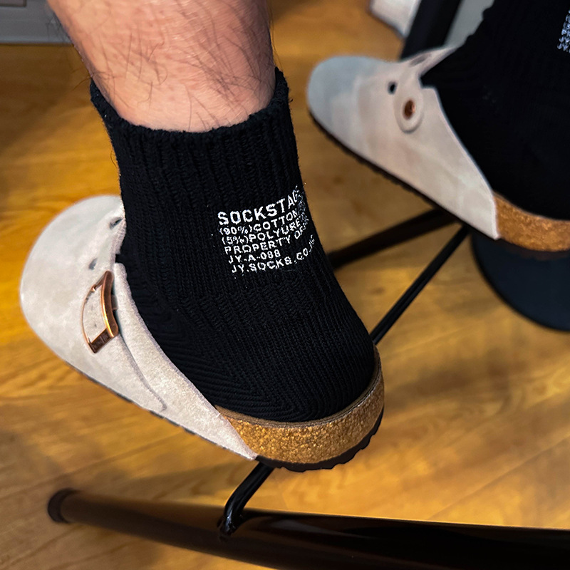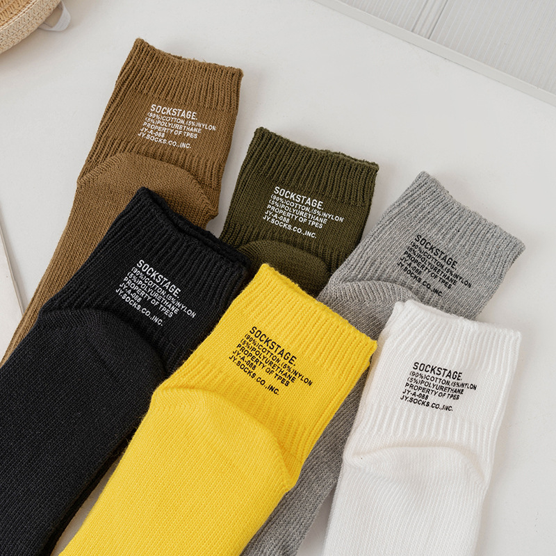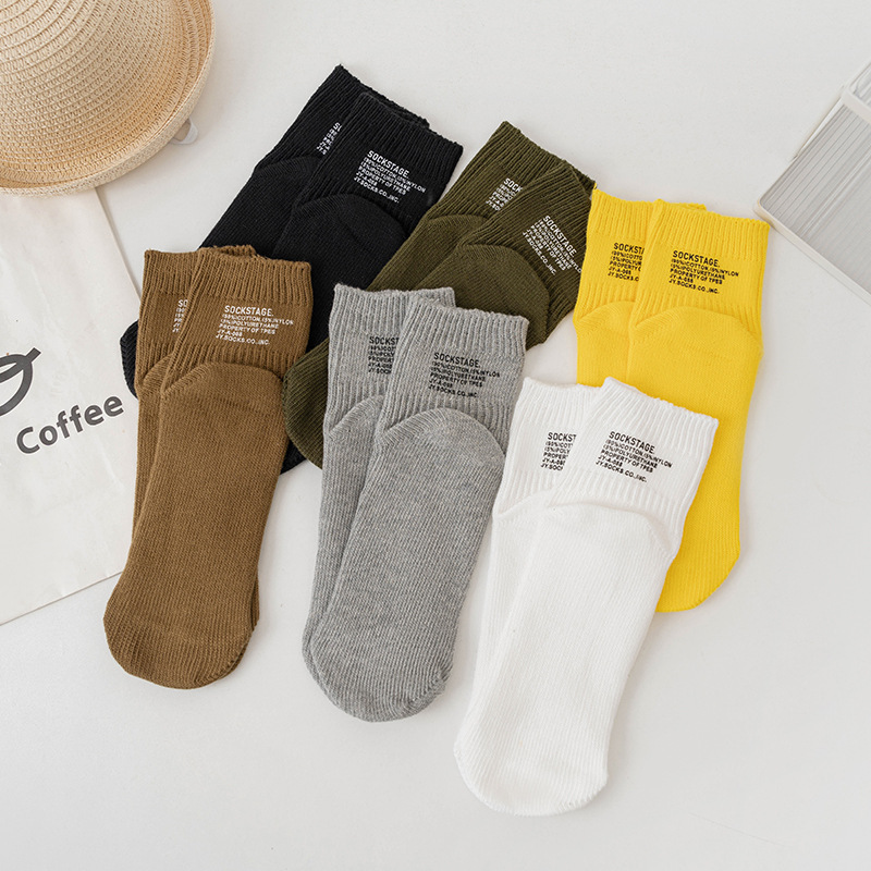 봄과 여름 간단한 단색 일본 스타일 두꺼운 바늘 다색 편지 인쇄 짧은 면 양말스토어 가기