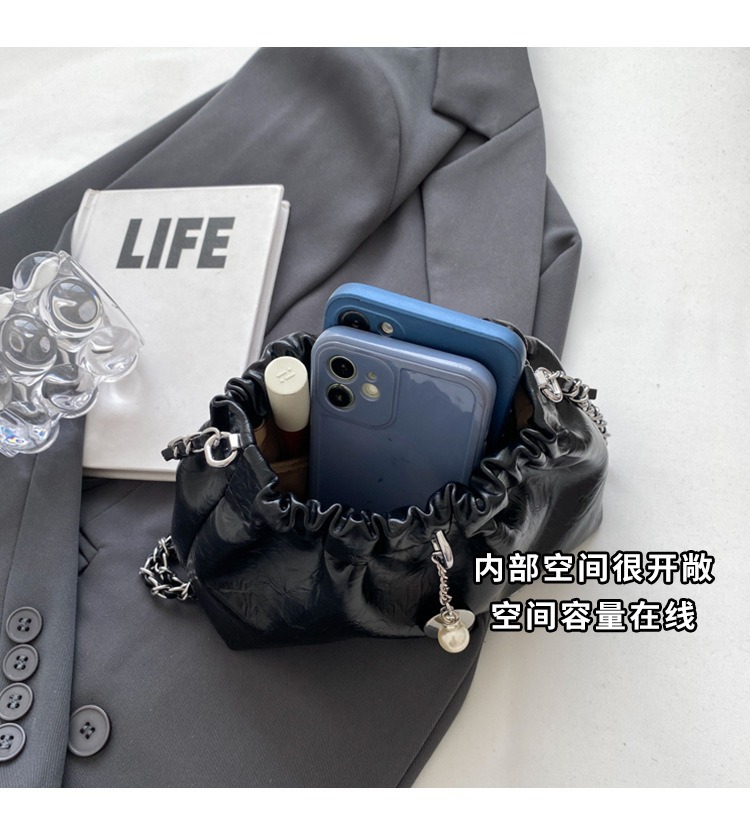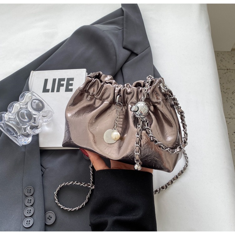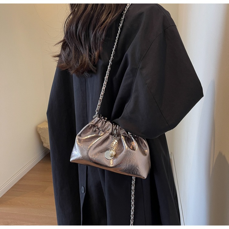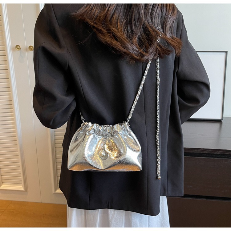 여름 하이 엔드 센스 틈새 올 매치 크로스 바디 체인 백 여자 2024 뉴 실버 드로우 스트링 버킷 백 클라우드 백
