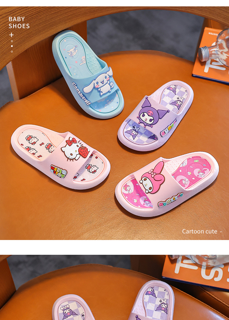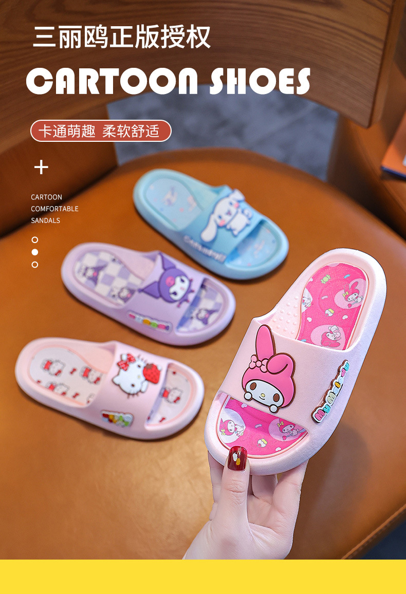 산리오 정품 어린이 슬리퍼 여름 샌들 실내 홈 귀여운 미끄럼 방지 부모-아이 한 단어 슬리퍼