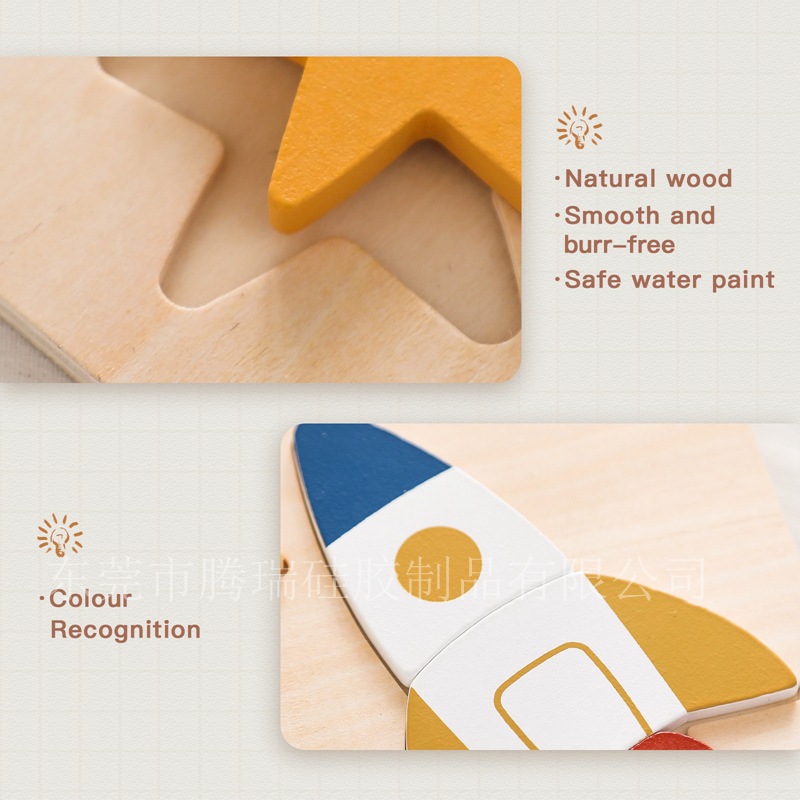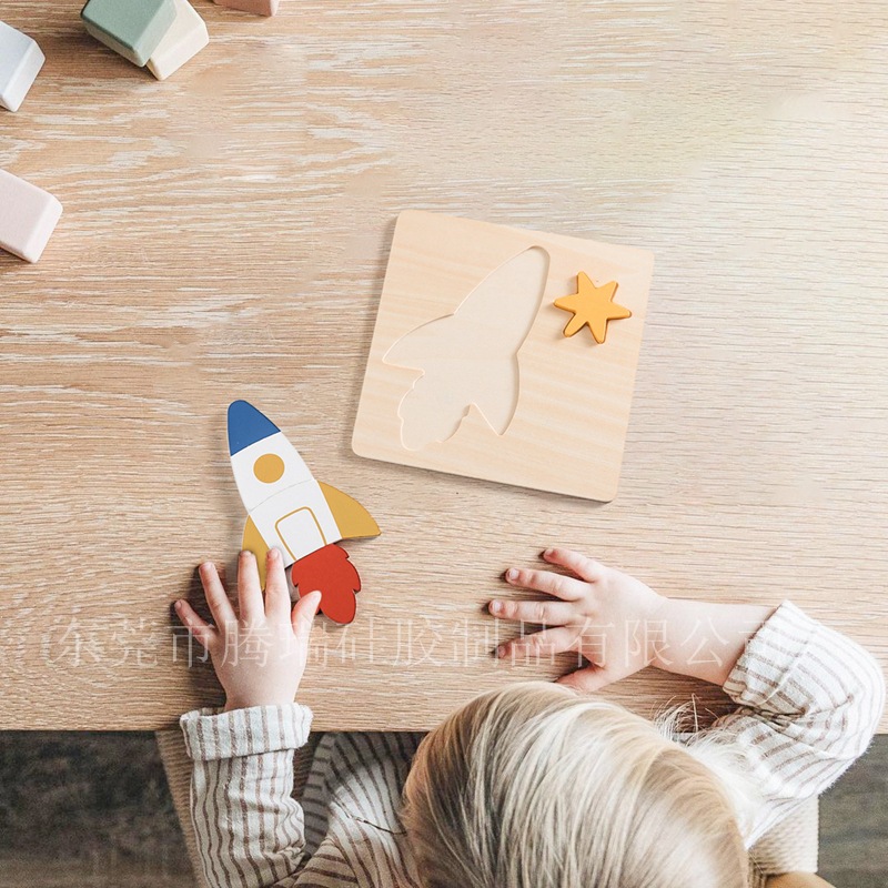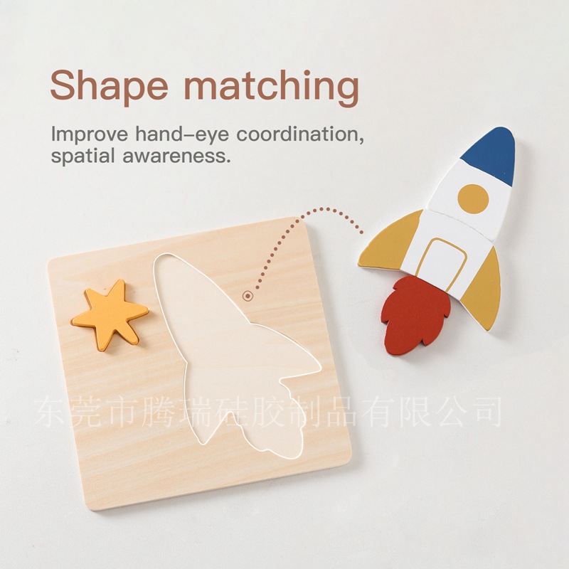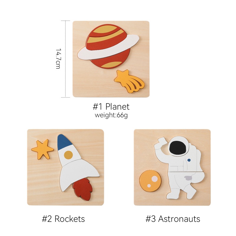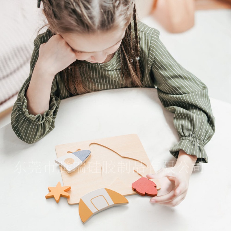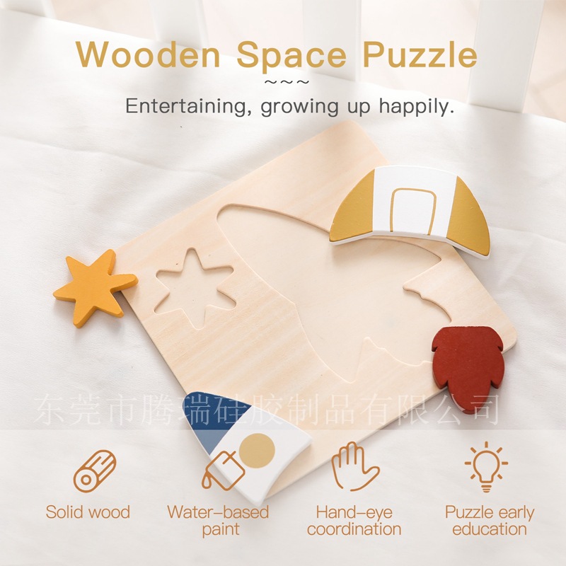 어린이 교육적인지 행성 퍼즐 아기 조기 교육 장난감 나무 우주 비행사 로켓 모양 일치하는 퍼즐