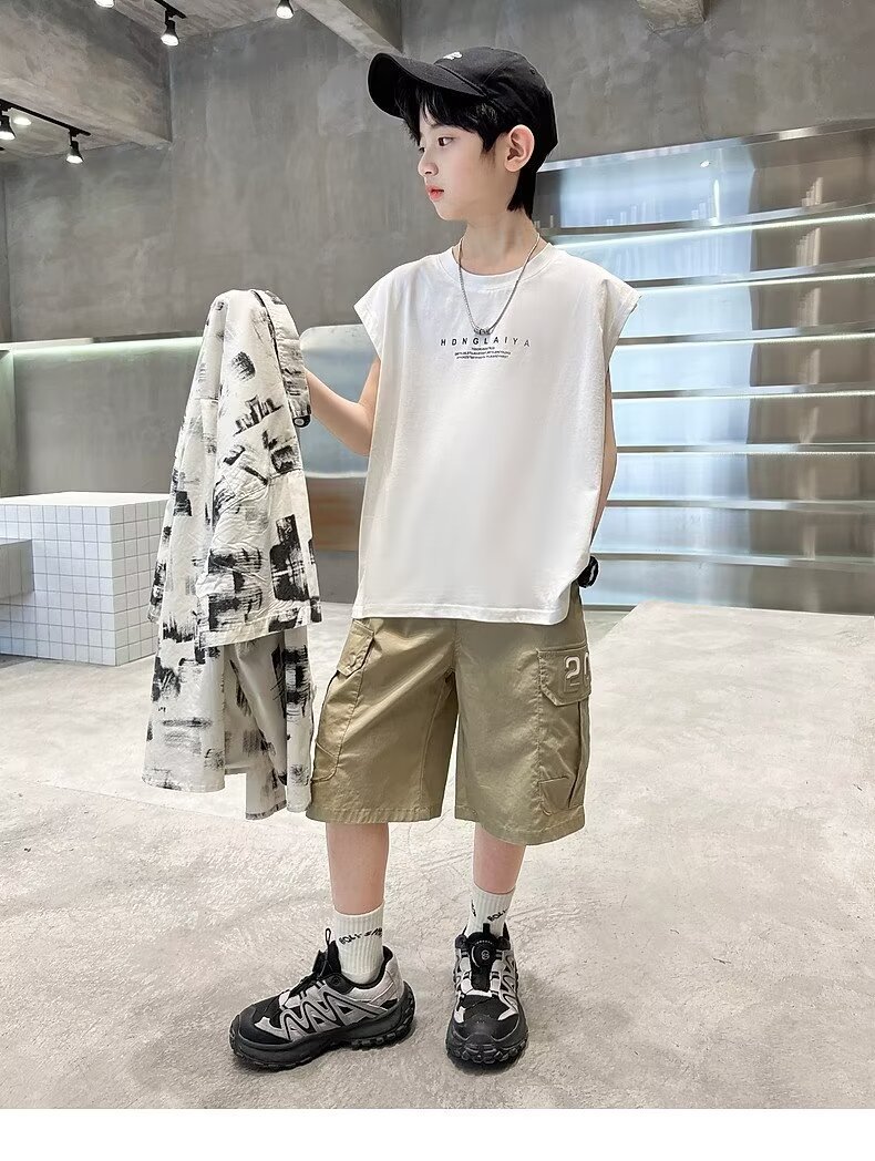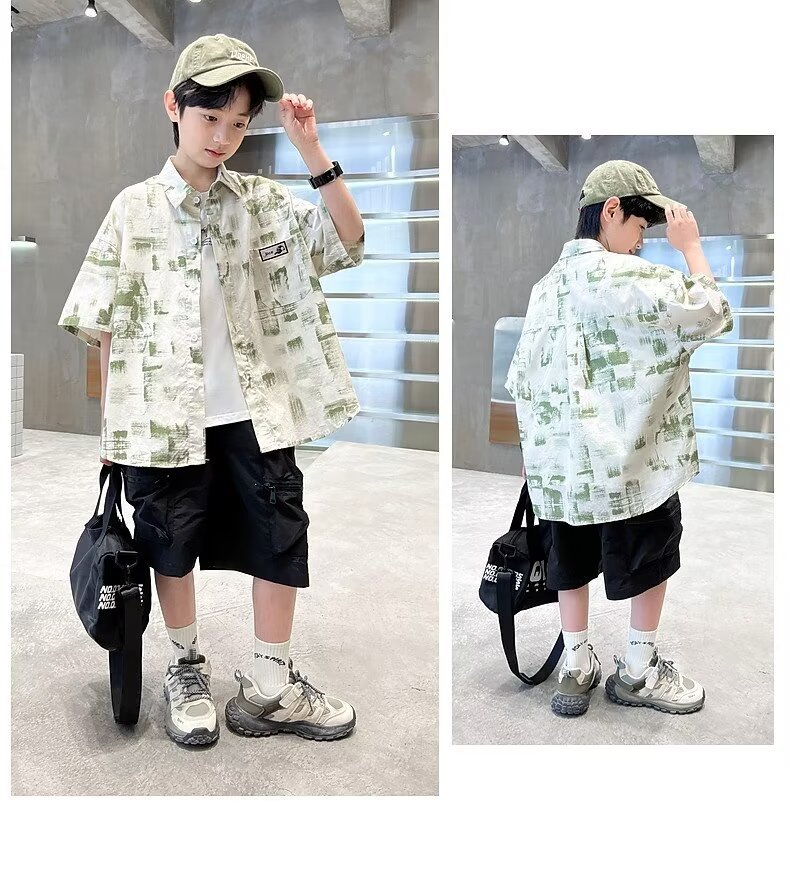소년 여름 셔츠 시원한 느낌 2025 새로운 여름 중대형 어린이 소년 여름 반팔 셔츠 유행상의