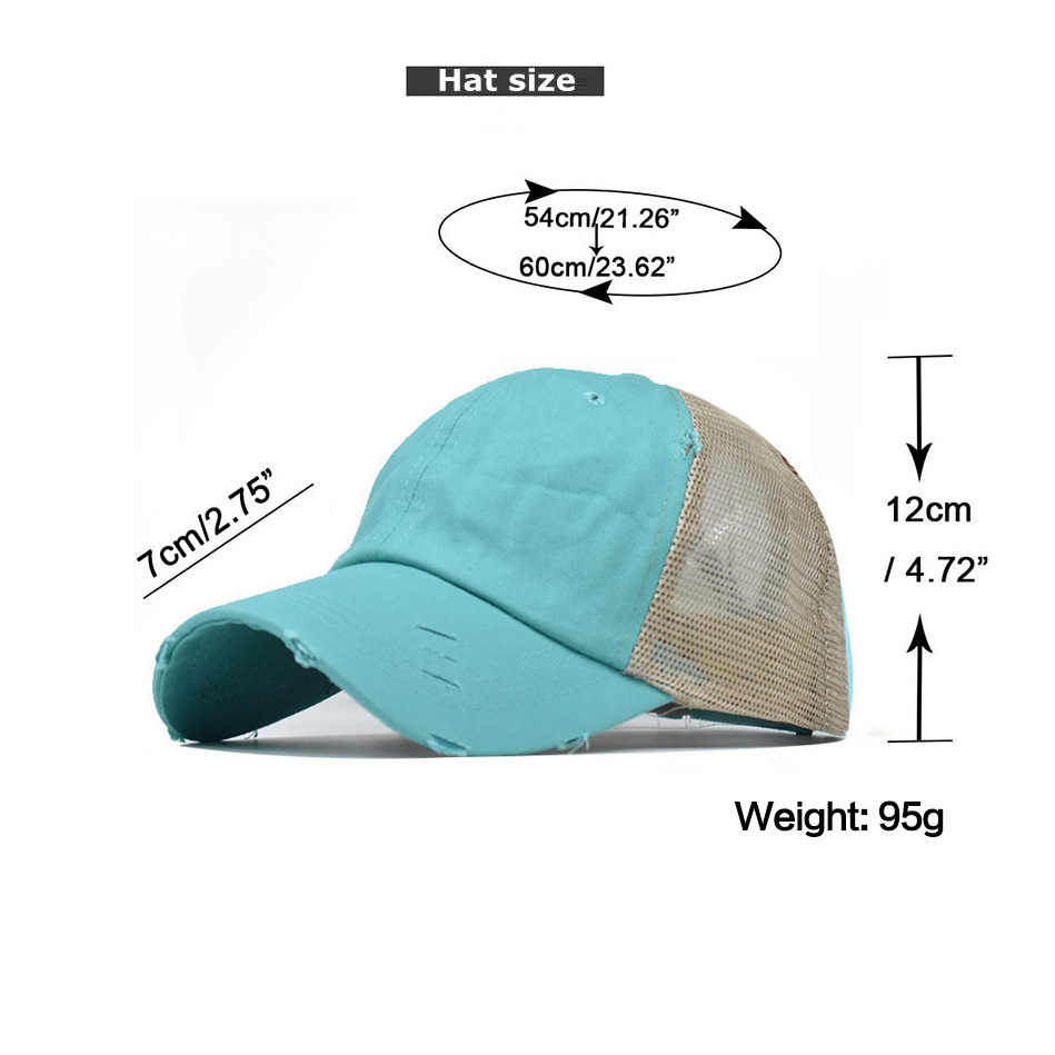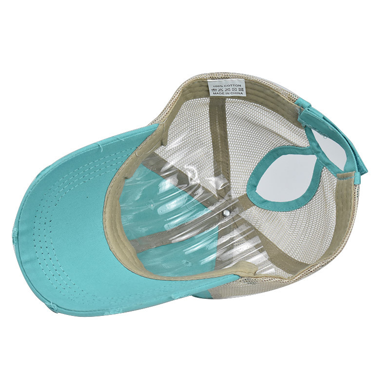 • 구멍 구멍 말꼬리 그물 모자 하늘색