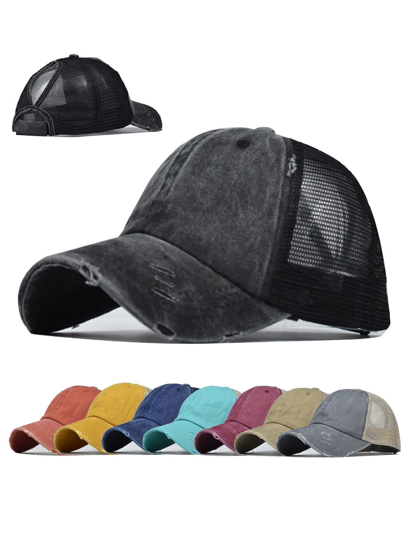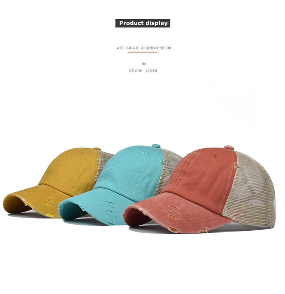 씻은 야구 모자 말꼬리 그물 모자 대외 무역 유럽과 미국의 조수 곡선 테두리 모자 봄과 여름 여자 야외 스포츠 통기성 태양 모자스토어 가기