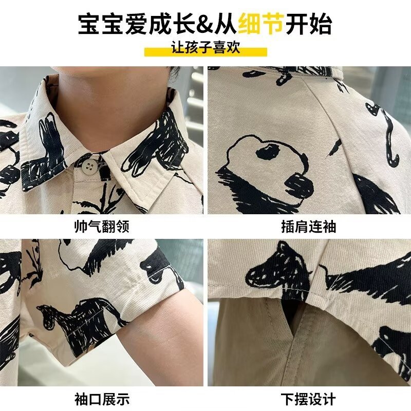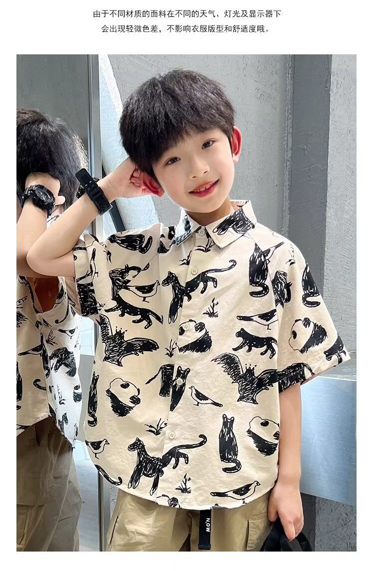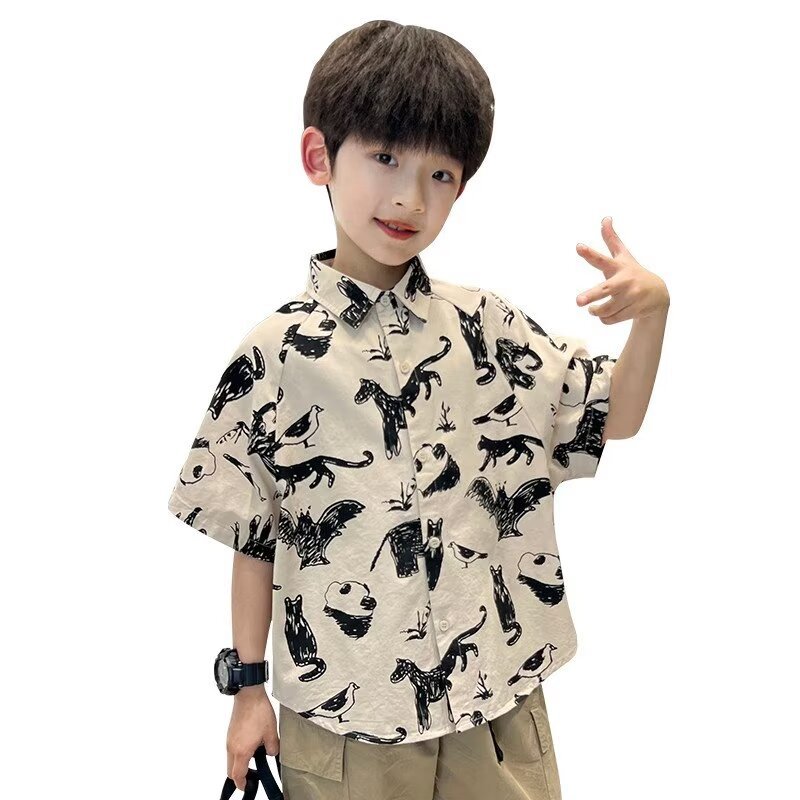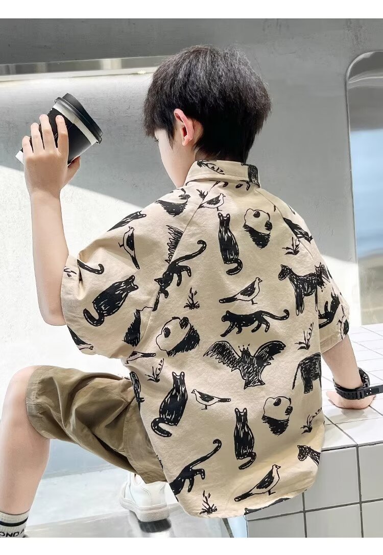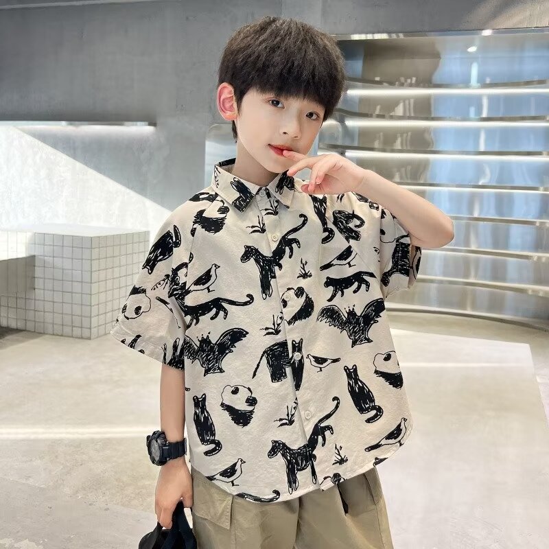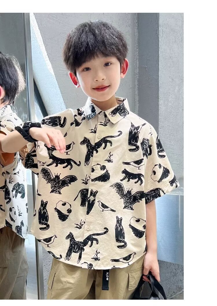 아동복 소년 반팔 셔츠 여름 2025 새로운 어린이 반팔 셔츠 느슨한 중형 및 대형 어린이 여름상의 유행스토어 가기