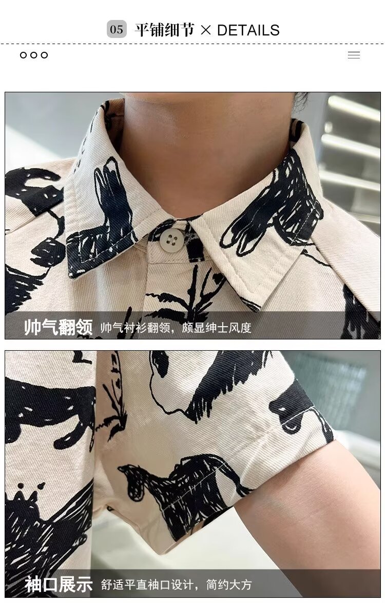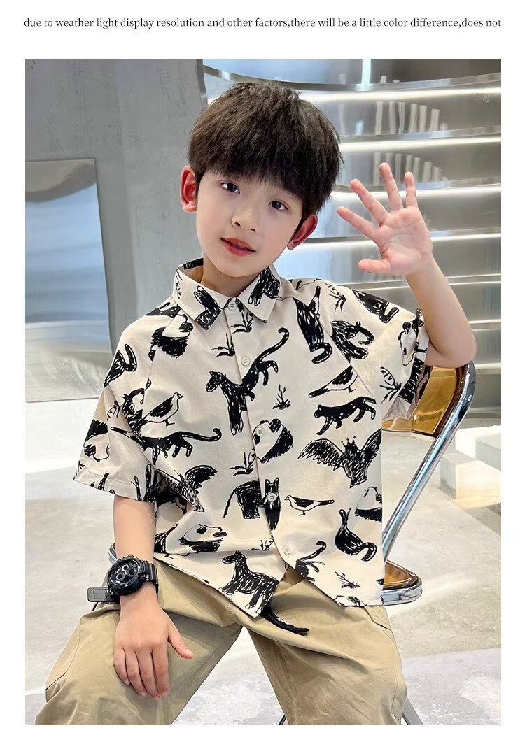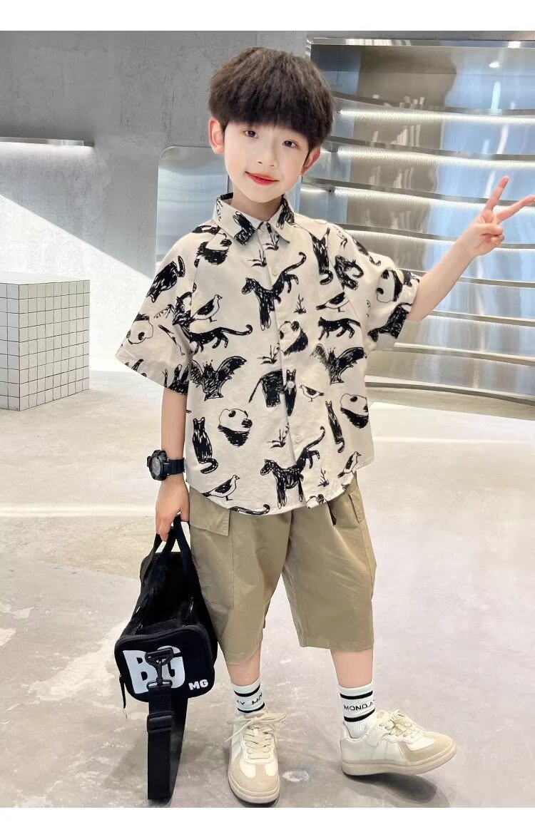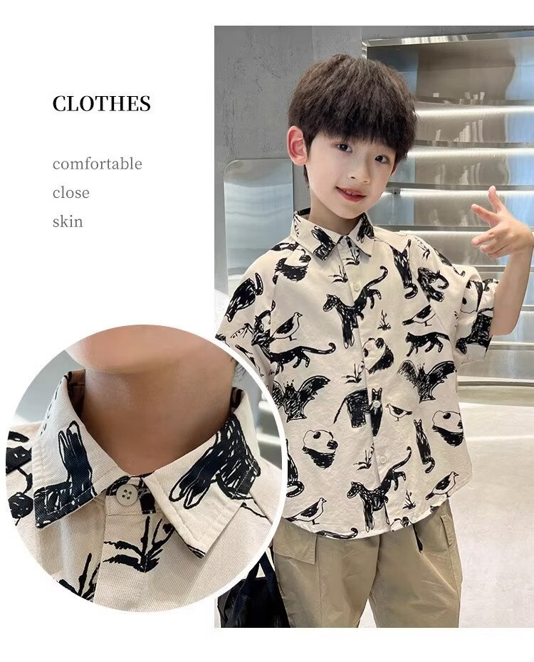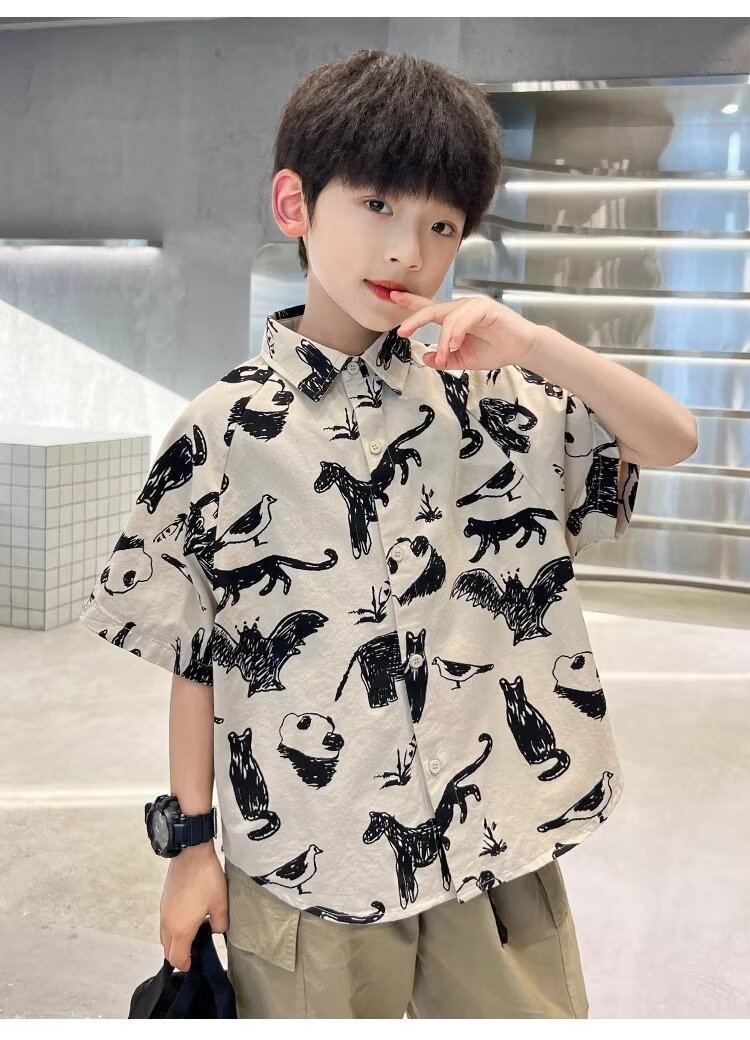 아동복 소년 반팔 셔츠 여름 2025 새로운 어린이 반팔 셔츠 느슨한 중형 및 대형 어린이 여름상의 유행스토어 가기
