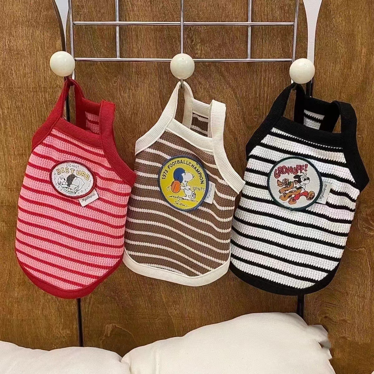 빈티지 스트라이프 카미 솔 애완 동물 옷 여름 고양이 개 옷 요크셔 Marzis 곰스토어 가기