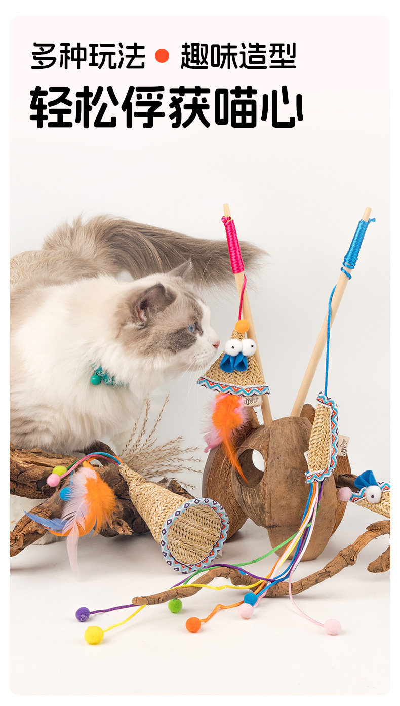 • 짚으로 만든 연 고양이 놀리는 막대기(캣닢 포함)