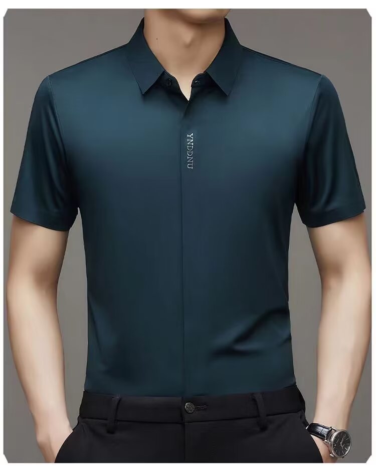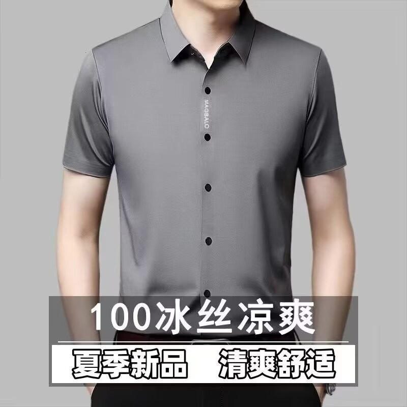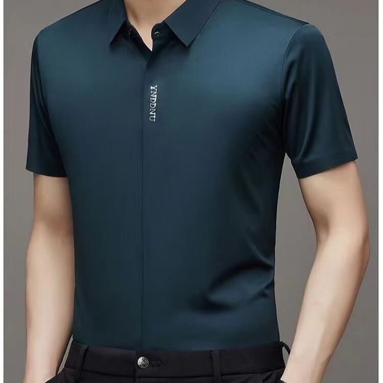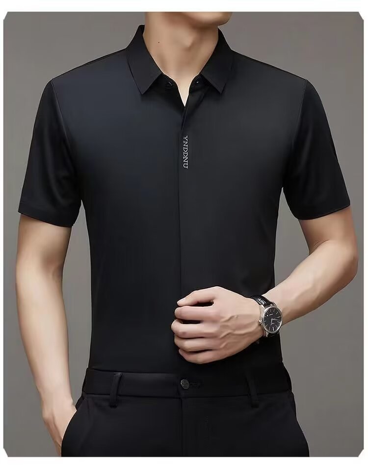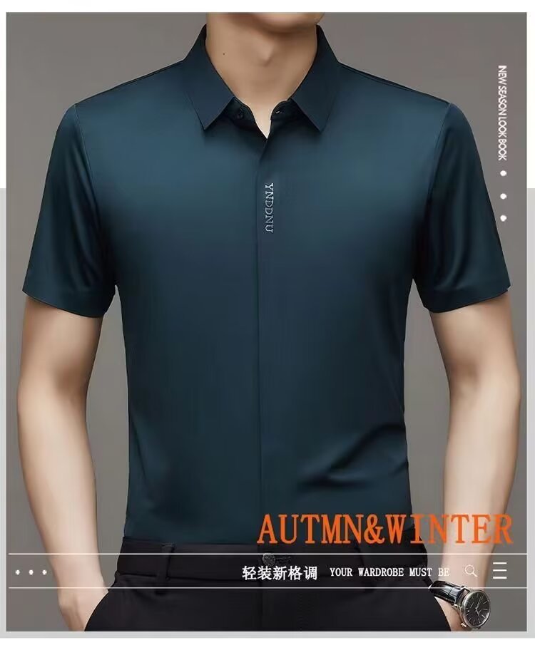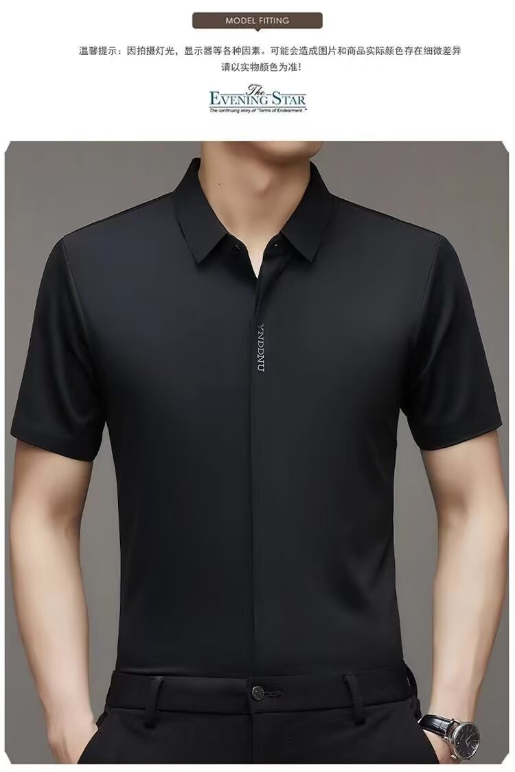 봄과 여름 남성 긴팔 셔츠 주름 방지 및 비 다림질 전문 원피스 패션 비즈니스 하이 엔드 아이스 실크 셔츠 블랙 셔츠스토어 가기