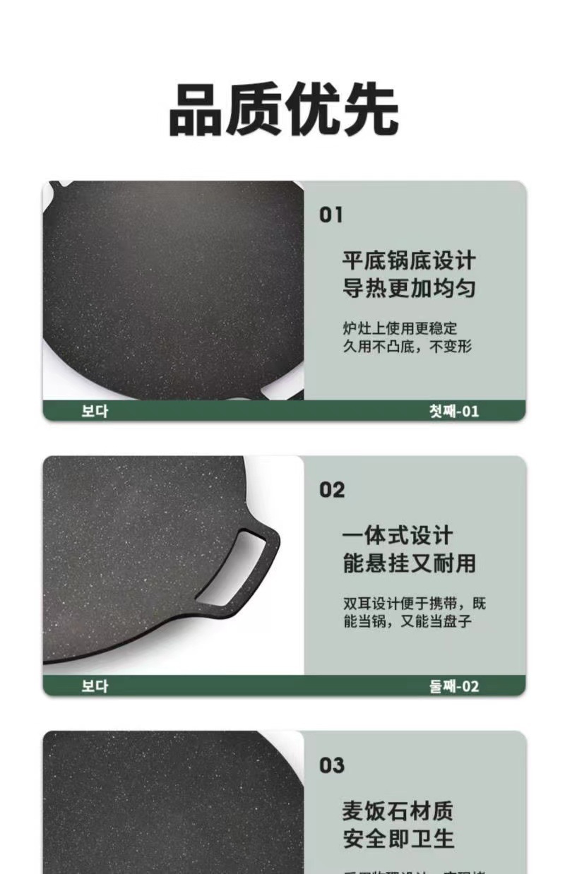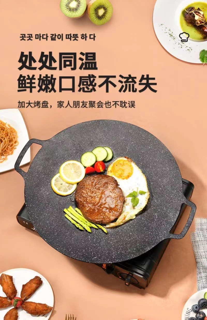 야외 붙지 않는 바베큐 플레이트 한국식 밀석 캠핑 바베큐 플레이트 상업용 철판 가정용 원형 프라이팬