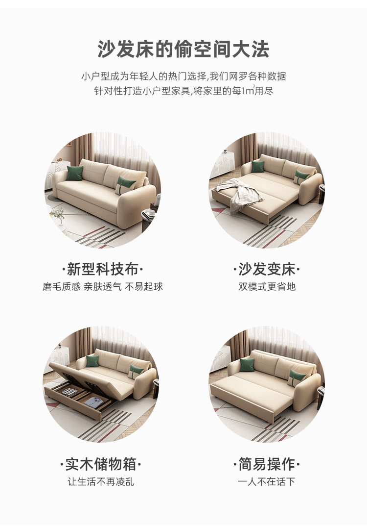 크림 스타일 소파 침대 이중 목적 푸시 풀 텔레스코픽 작은 아파트 다기능 거실 더블 스토리지 접이식 단순스토어 가기